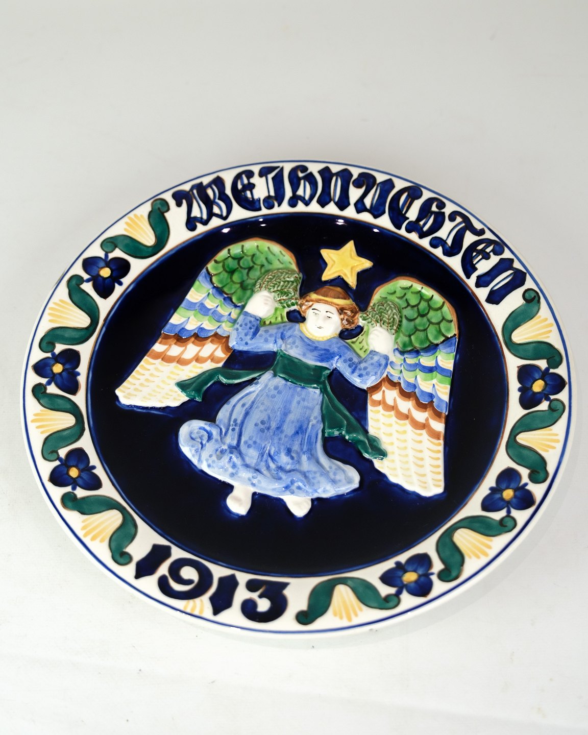 Denne juleplatte, model 974/792, er fremstillet i fajance af Aluminia og dekoreret med et elegant motiv af en engel. Plattten har et klassisk og stemningsfuldt design, der indfanger julens budskab og traditioner.