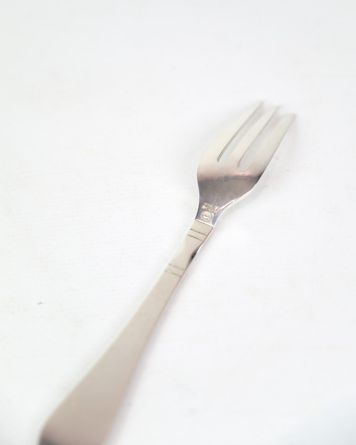 Denne kagegaffel fra Continental-serien er udført i sterling sølv af Georg Jensen. Med sit tidløse og funktionelle design er gaffelen perfekt til servering af kager og desserter, hvor klassisk skandinavisk håndværk og elegance er i fokus.