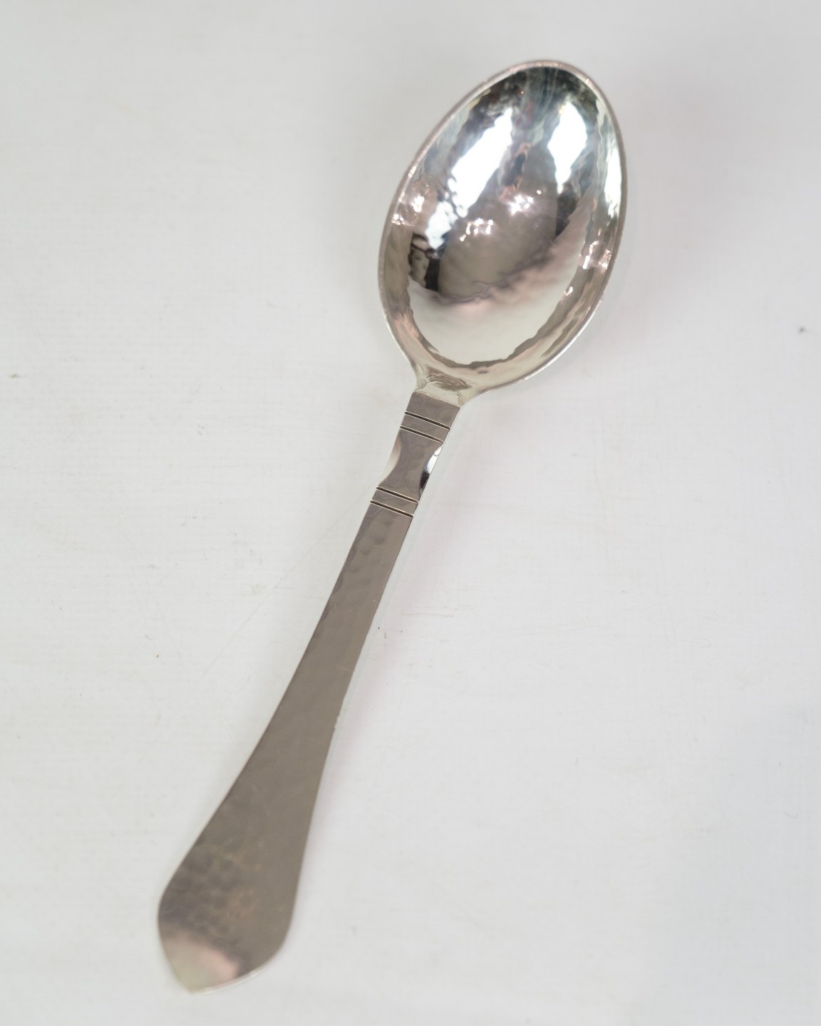 This dessert spoon from the Continental series is made of sterling silver by Georg Jensen. With its timeless and functional design, the spoon is ideal for serving desserts and small dishes, where classic elegance and quality are in focus.