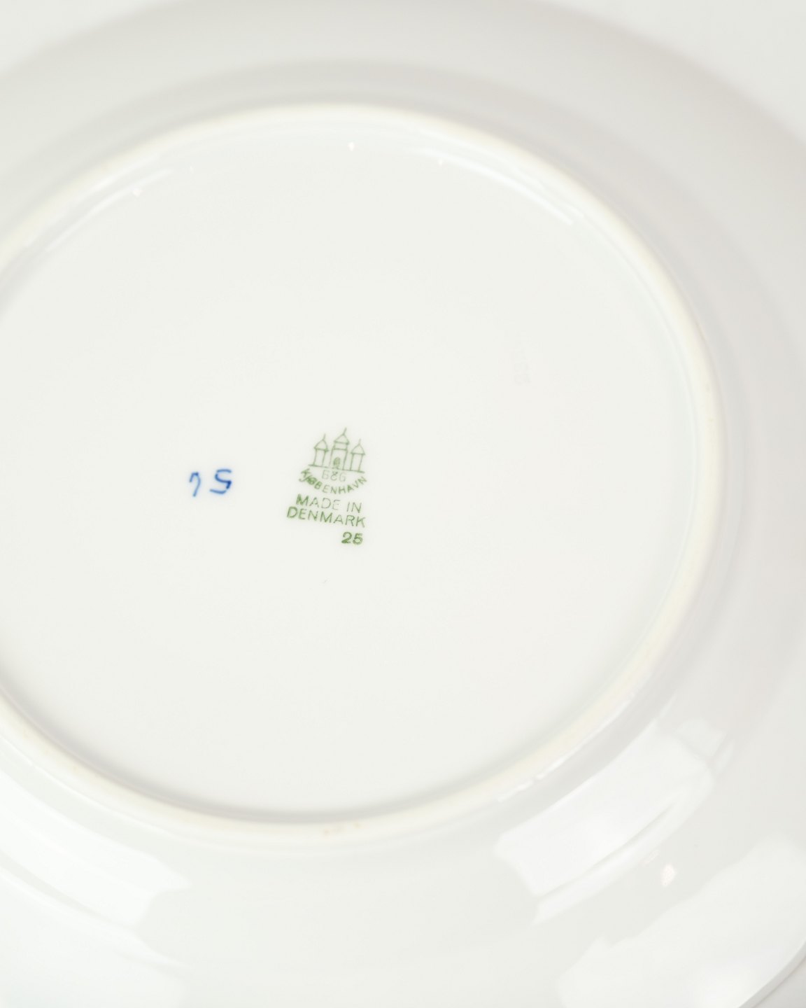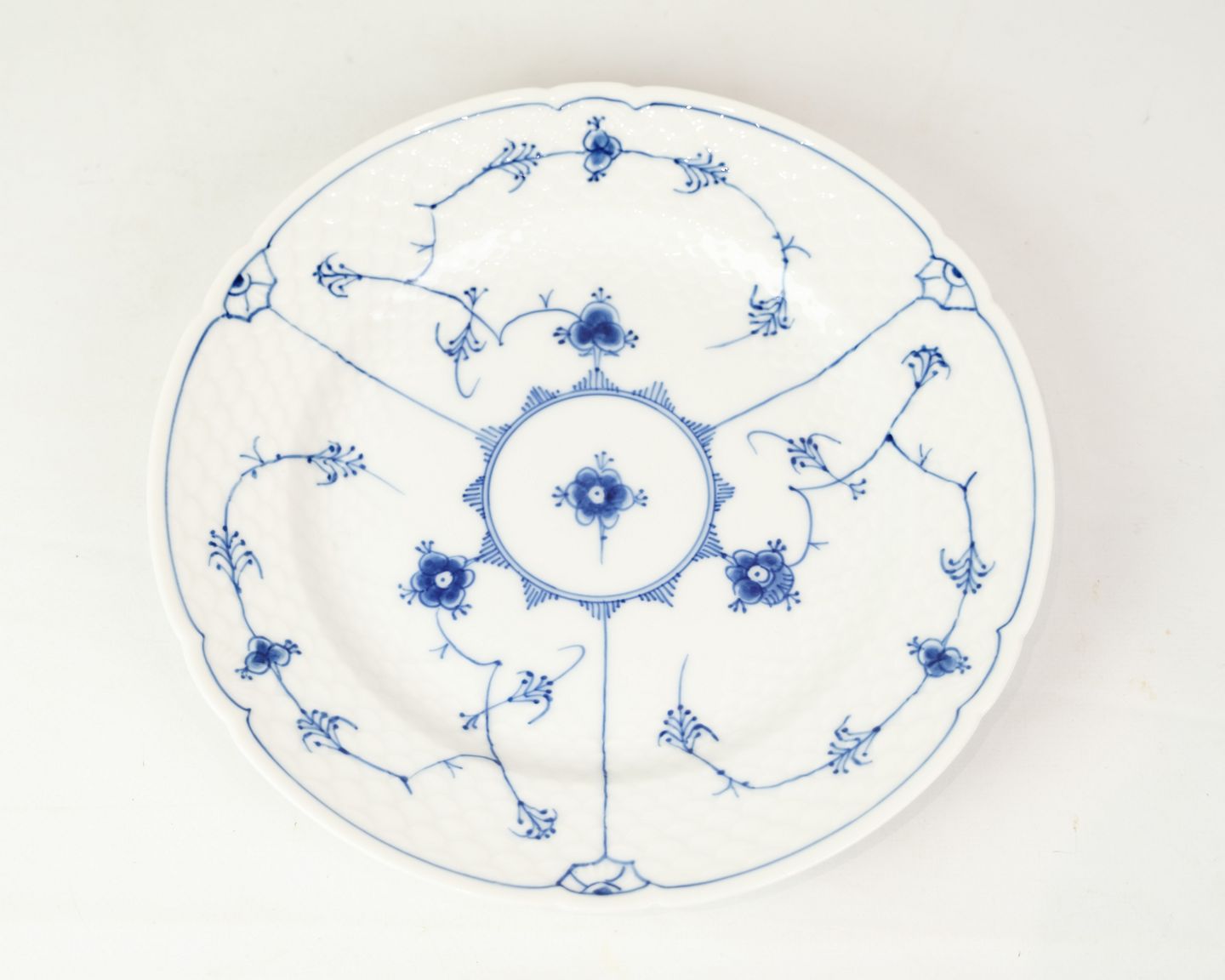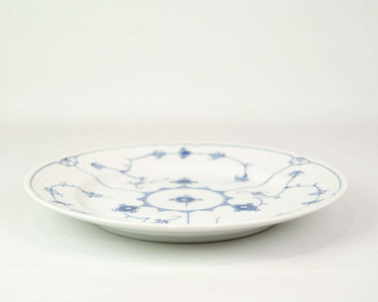 Middagstallerken nr. 025 fra Bing & Grøndahl. Fremstillet i porcelæn med klassisk blåmalet musselmalet dekoration.