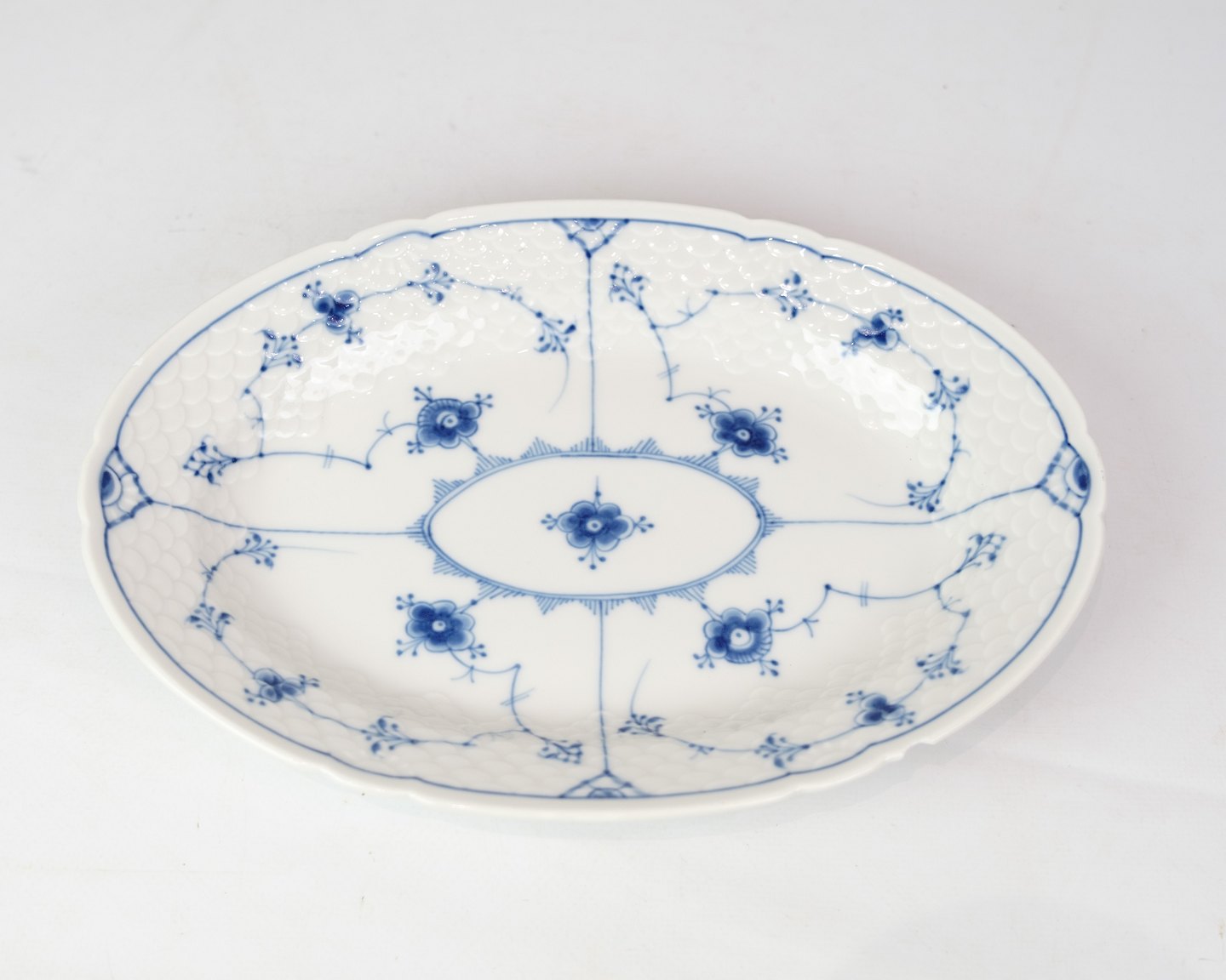 Oval Dish - No. 18 - Porcelain - Blue Painted - Blue Fluted - Bing & Grondahl