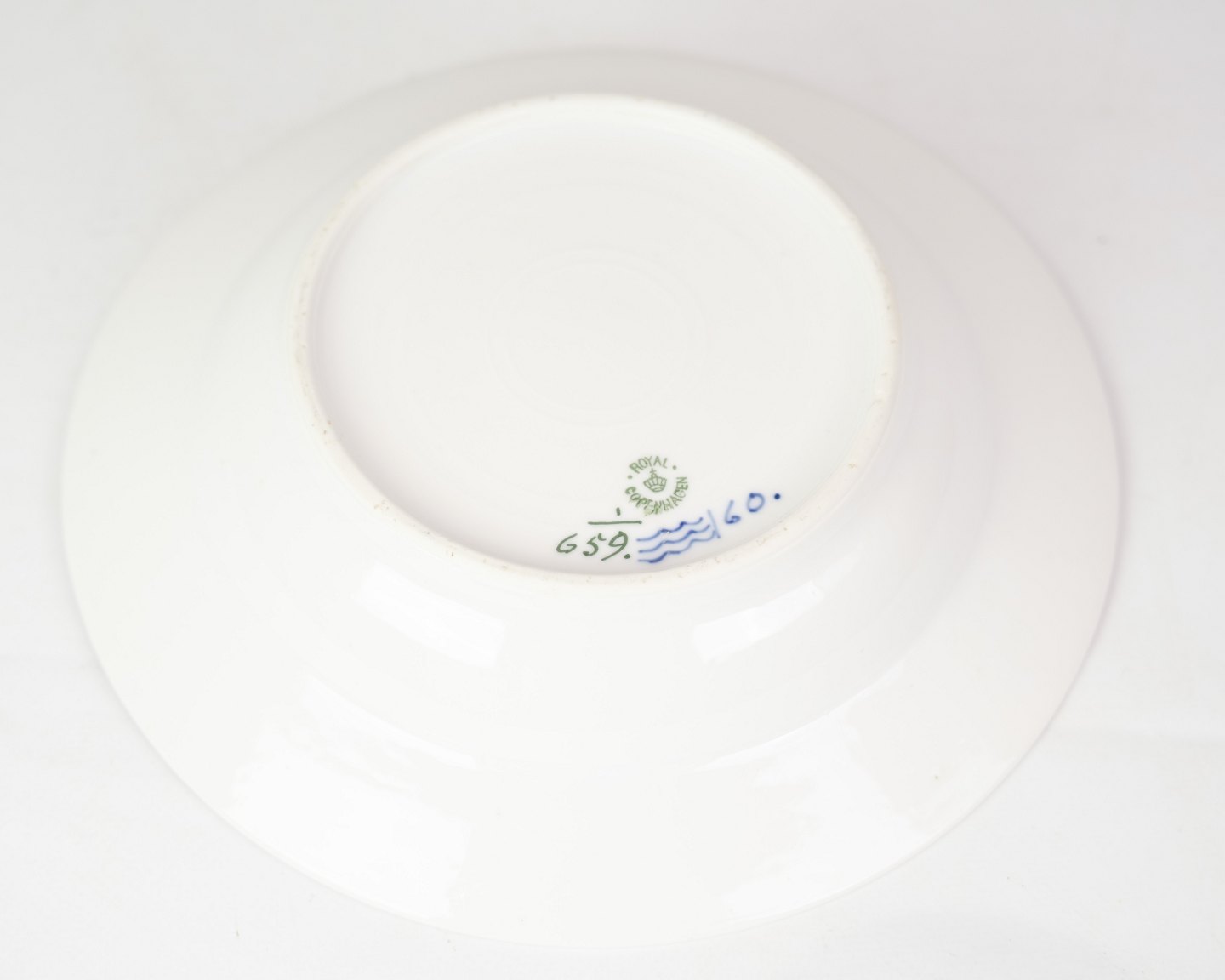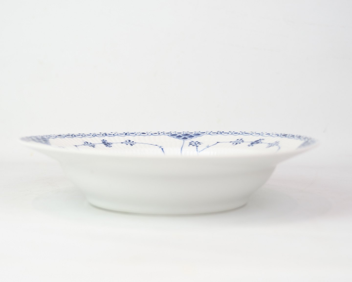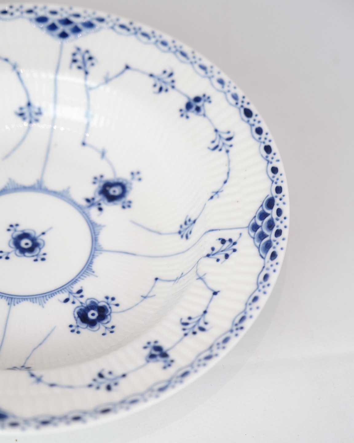 Dyb Tallerken mærket 1/659 fra Royal Copenhagen udført i musselmalet halvblonde design. tallerken er lavet af porcelæn og håndmalet i blå dekoration.