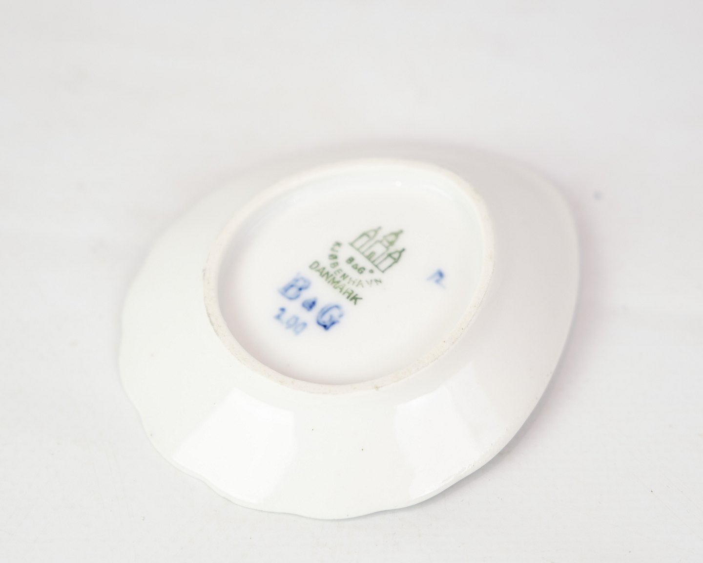 Lille muslingeskål mærket 200 fra Bing og Grøndahl. Fremstillet af porcelæn med klassisk musselmalet design. Håndmalet i blå dekoration.
