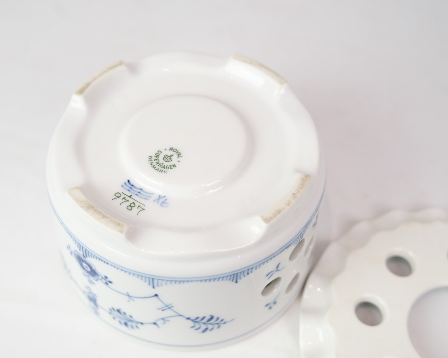 Tealight warmer by Royal Copenhagen in the Fluted Fluted pattern model no. 1 /9787. The tealight warmer is used to keep either tea or coffee pot warm. In very nice hand-painted condition.