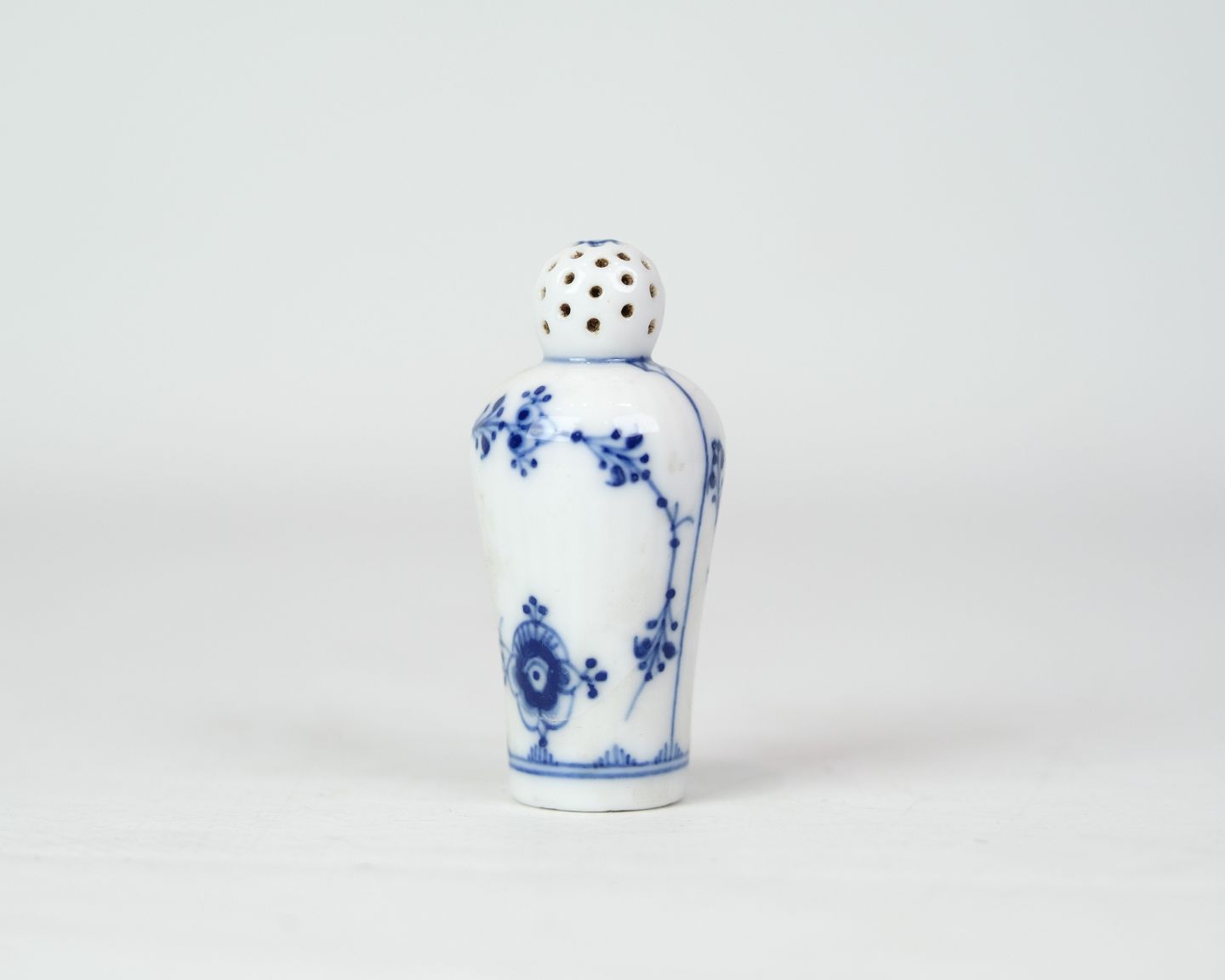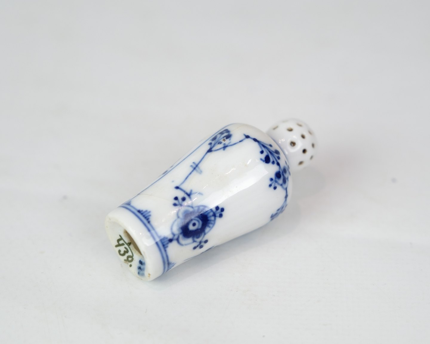 Pepper shaker of older date made by R&C in the pattern blue fluting fluted of older date. Appears to be model no. 439 without flaws and defects in a beautiful hand-painted pattern.
