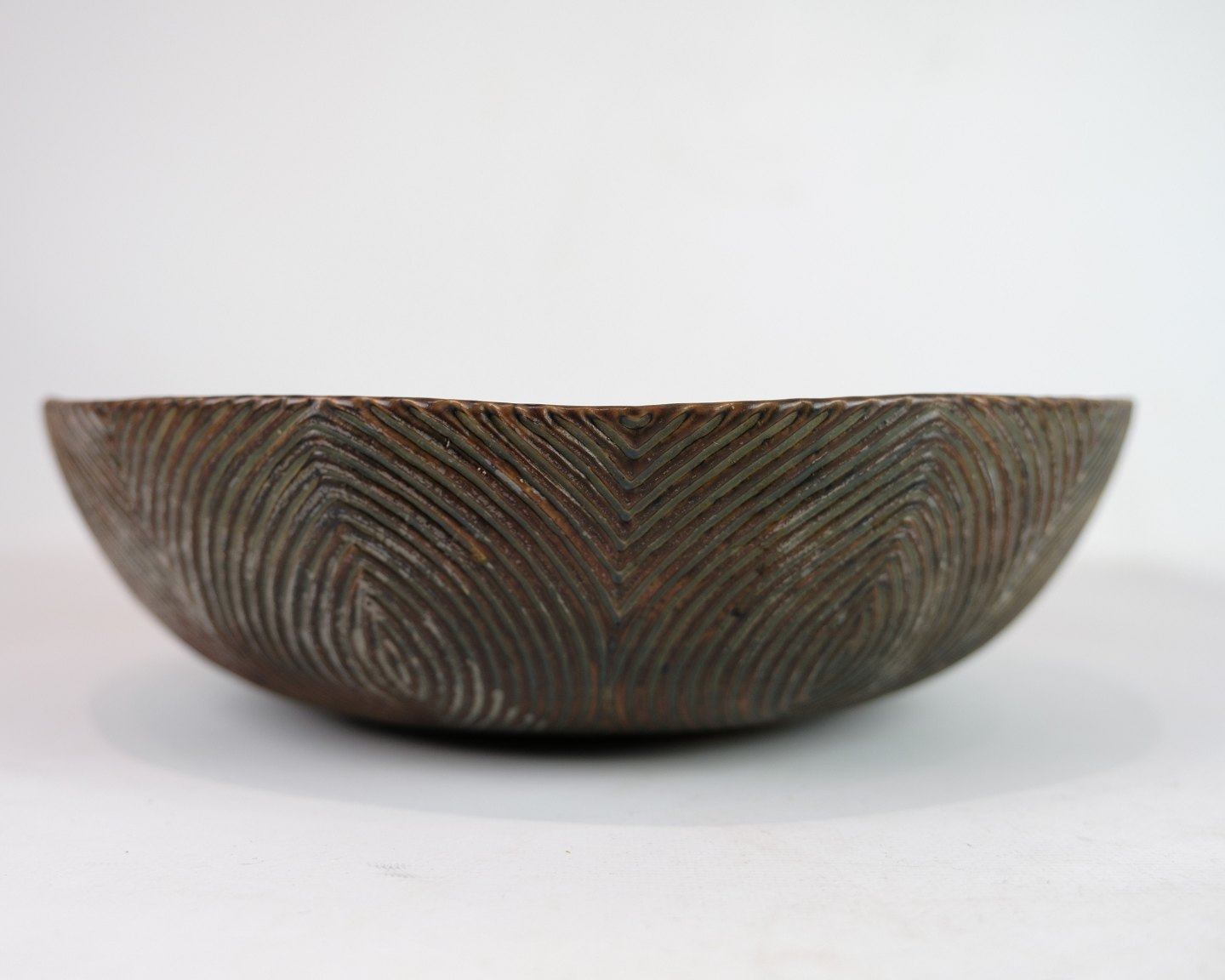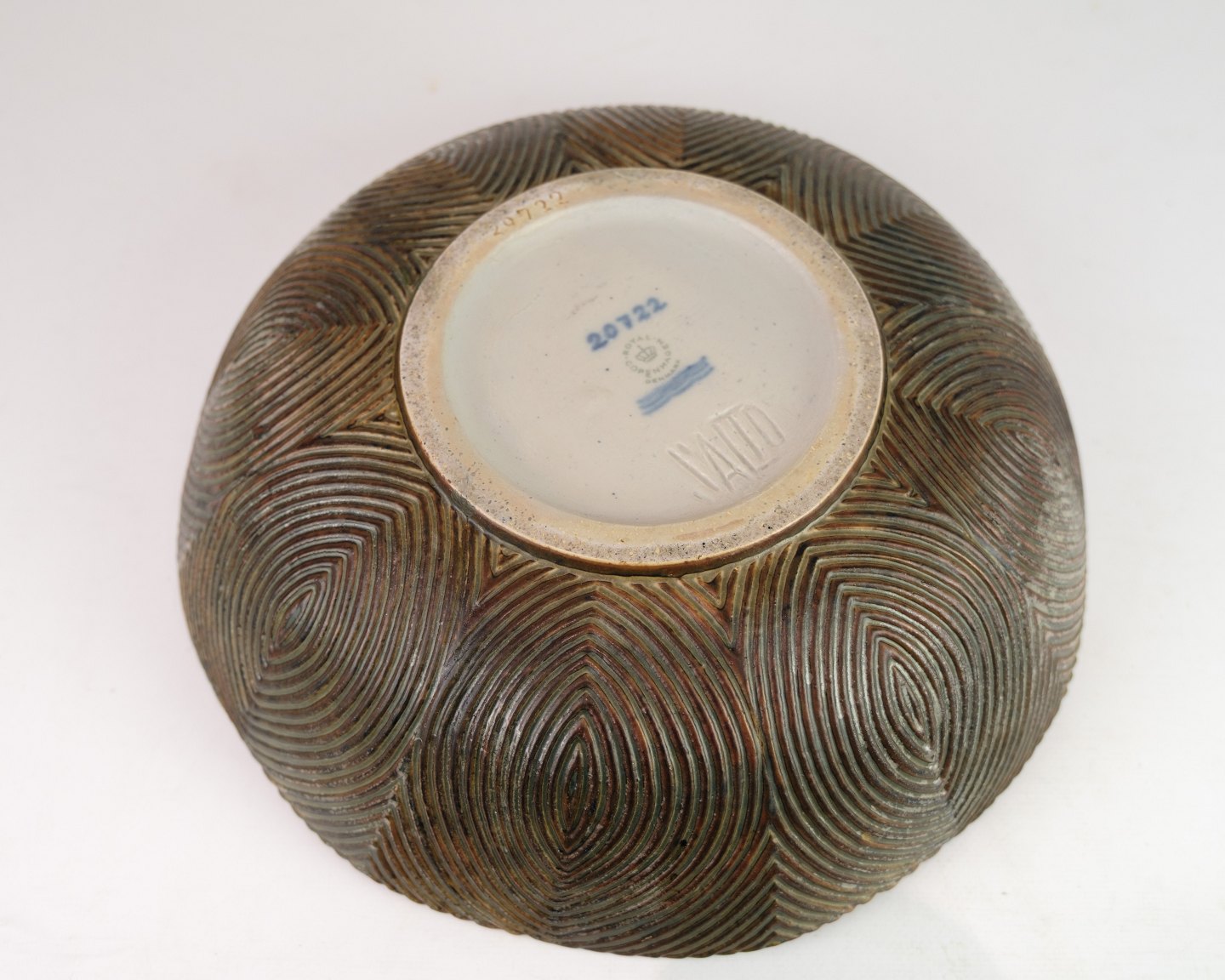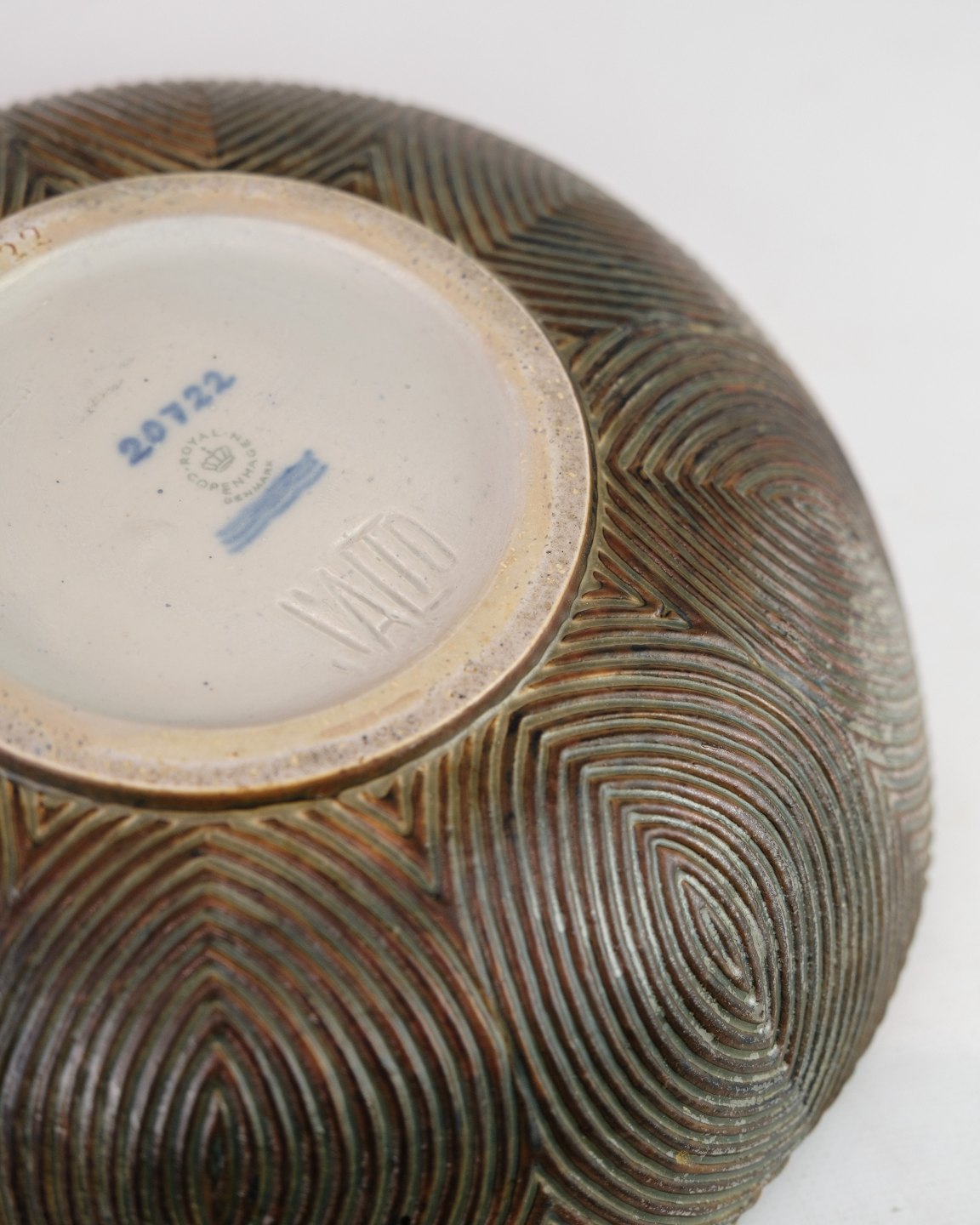 Skål nr. 20722 i stentøj, udført med sung-glasur af Axel Salto for Royal Copenhagen. Organisk form med levende overflade og dyb glasur, karakteristisk for Saltos stil. Signeret “Salto” i bunden.