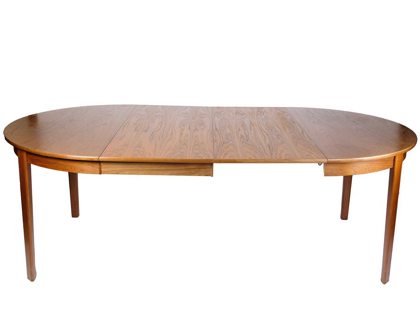 Round teak dining table with four extension leaves, made in Denmark in the 1960s. The table can be extended with up to four leaves, which is rare and provides great flexibility.
