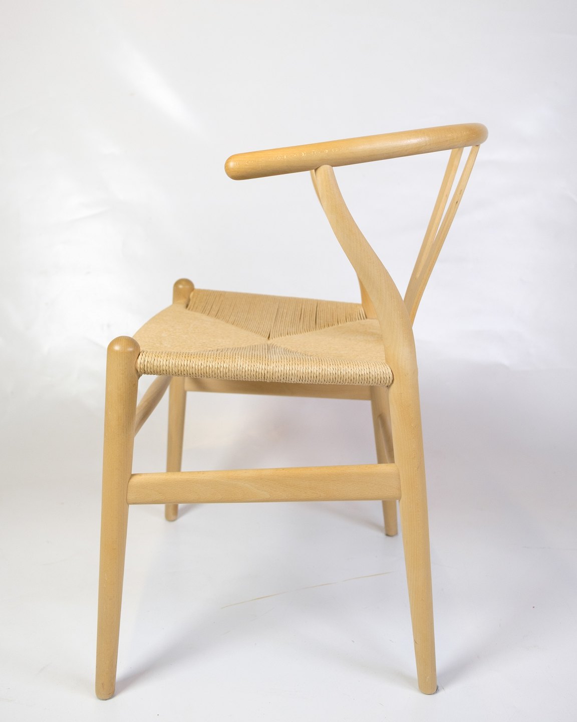 SolgtSæt af fire Y-stole, model CH24, designet af Hans J. Wegner og produceret af Carl Hansen & Søn. Udført i bøg med håndflettet sæde i papirgarn. Hans J. Wegner (1914–2007) var en dansk møbeldesigner, der skabte over 500 stole med fokus på funktion, håndværk og enkel formgivning. Y-stolen er et af hans mest kendte værker og et fast ikon i dansk møbeltradition.