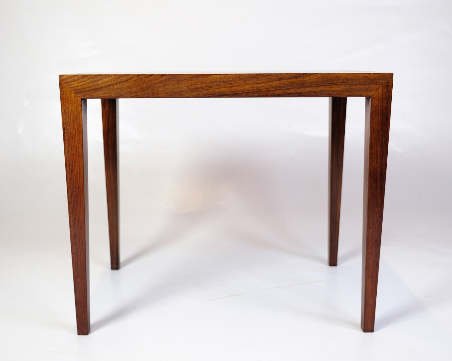 Side table/nightstand model 162, designed by Severin Hansen and manufactured by Haslev Møbelfabrik in the 1960s. The side/nightstand is made of rosewood and is in good condition.