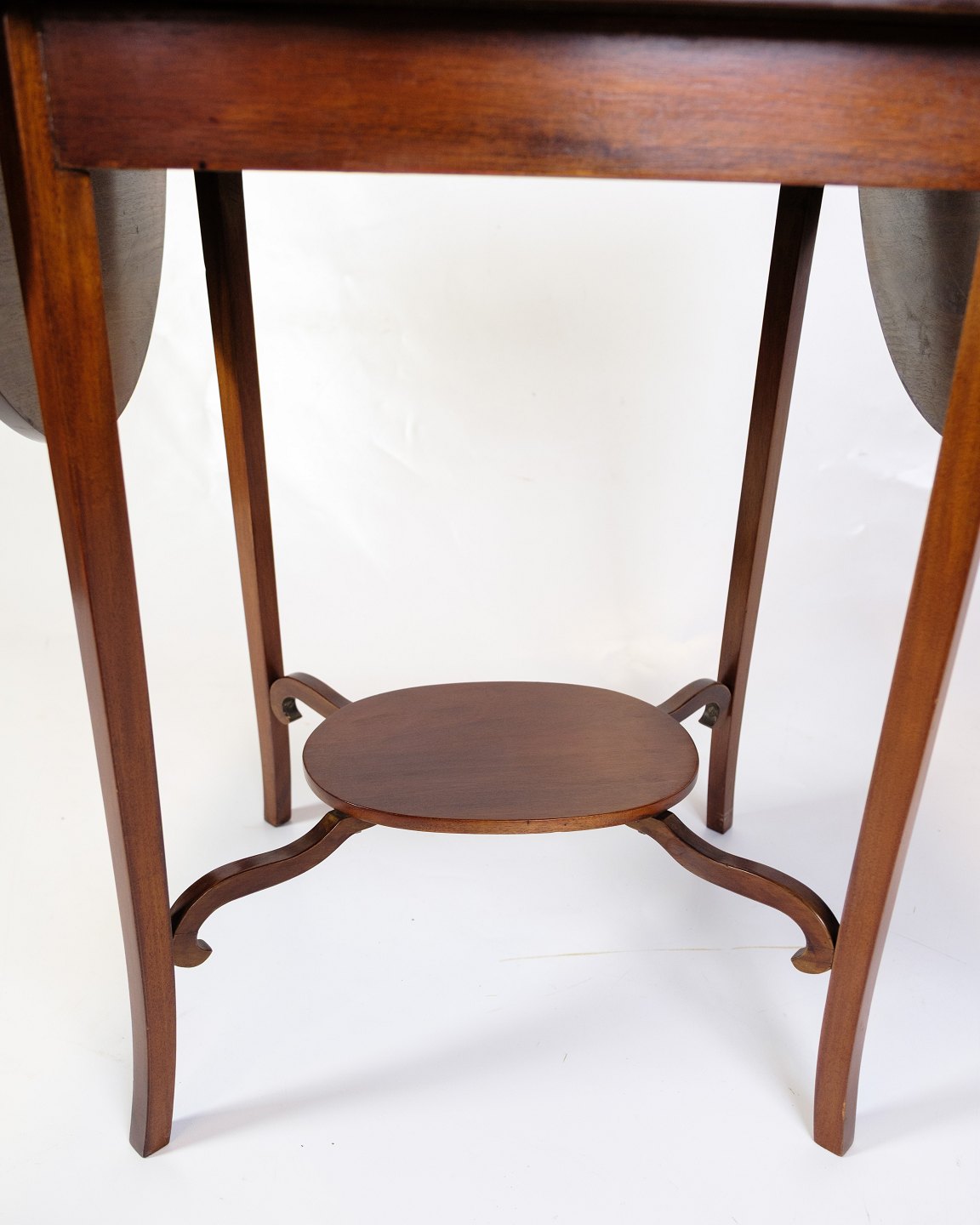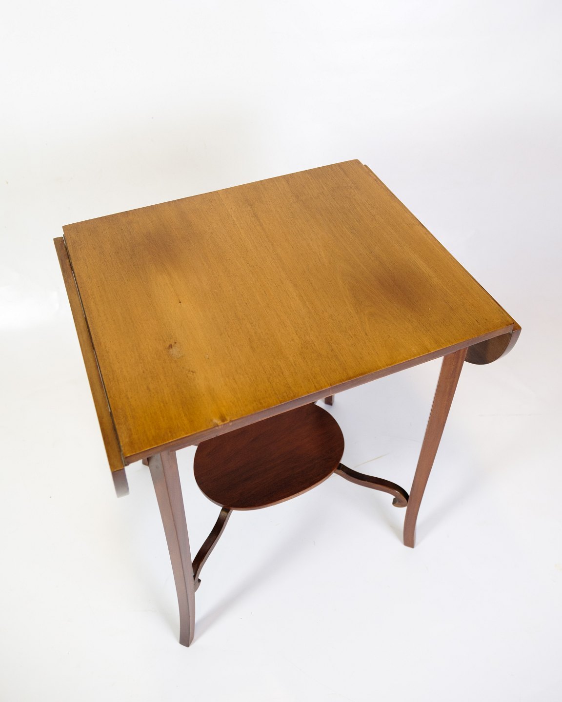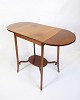 SolgtSidebord med klapper i mahogni, fremstillet i Danmark i 1960’erne. Bordet har to klapbare plader, der giver fleksibel bordplads, samt en underhylde til ekstra opbevaring. Udført i mahogni med fine buede ben og klassiske detaljer.