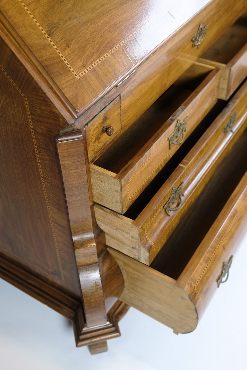 Chatol with four drawers, inlay and with interior painting. The chatol is made of light walnut and manufactured by the furniture factory Lysberg & Hansen, from around the year 1890.