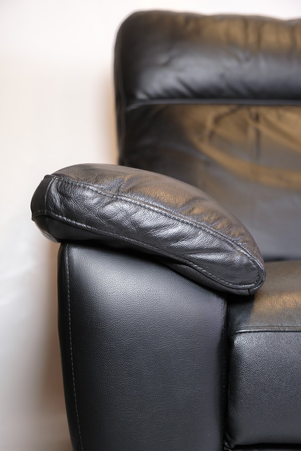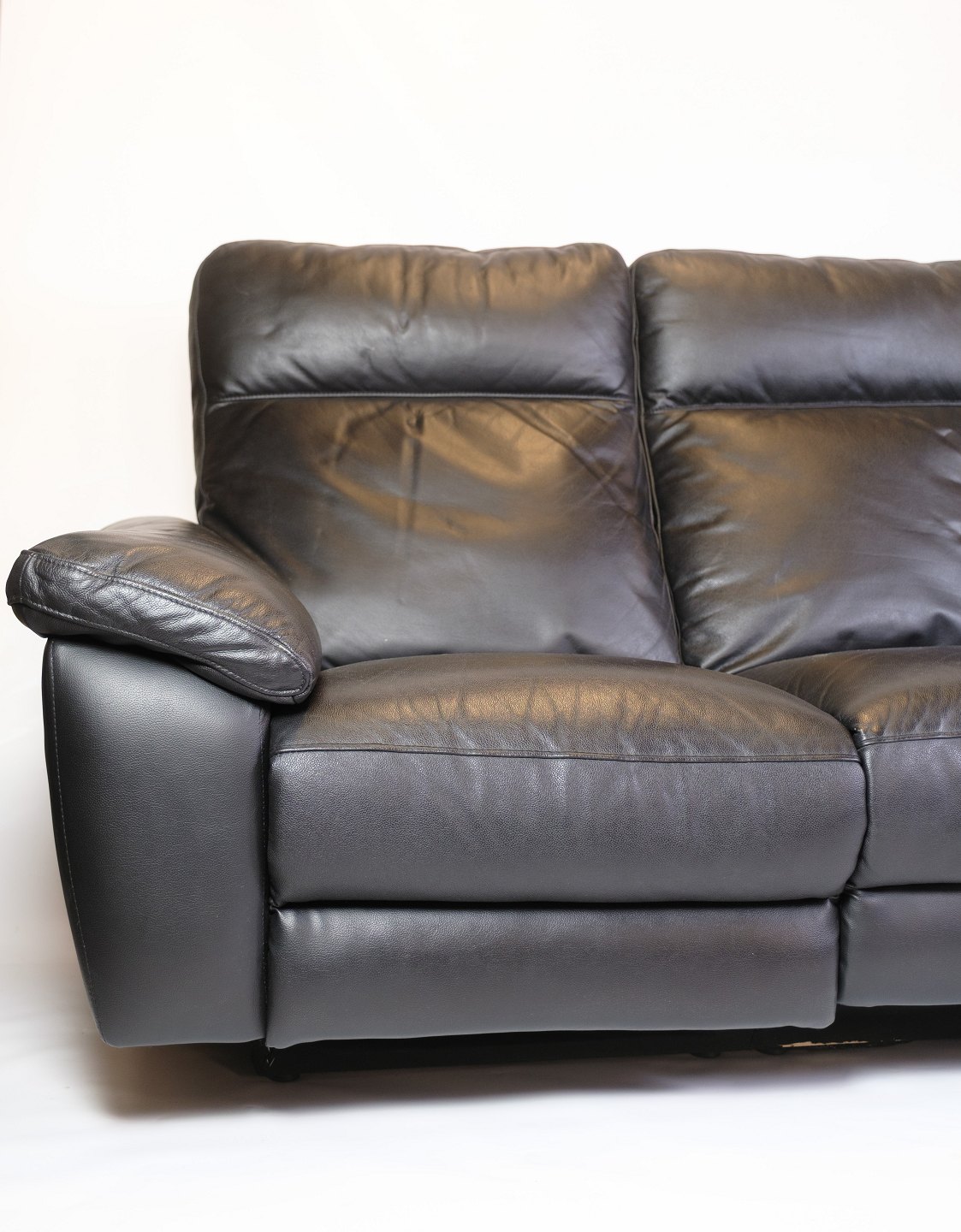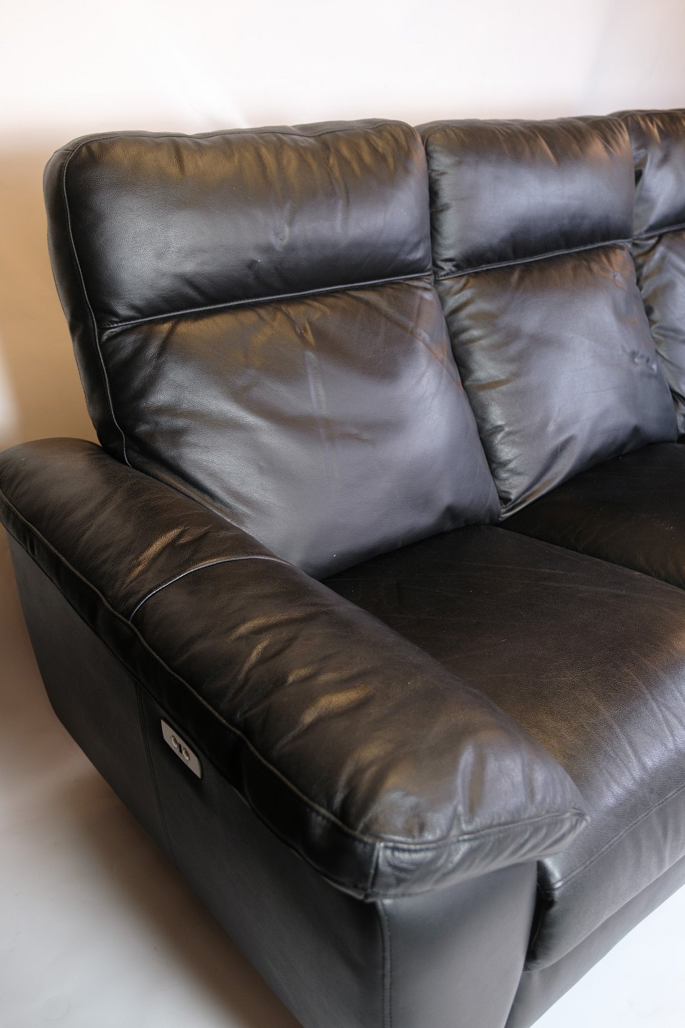 3-personers sofa fremstillet i sort læder. Sofaen er udstyret med justerbart ryglæn og benstøtte, som betjenes elektronisk. Den fremstår i pæn stand, og al elektronik er testet og fungerer korrekt.
