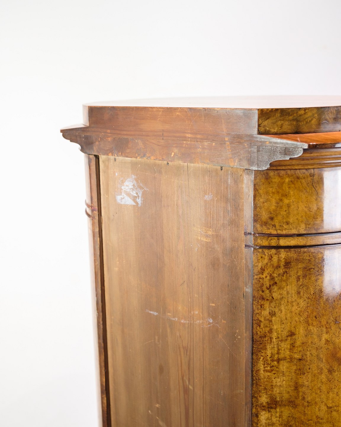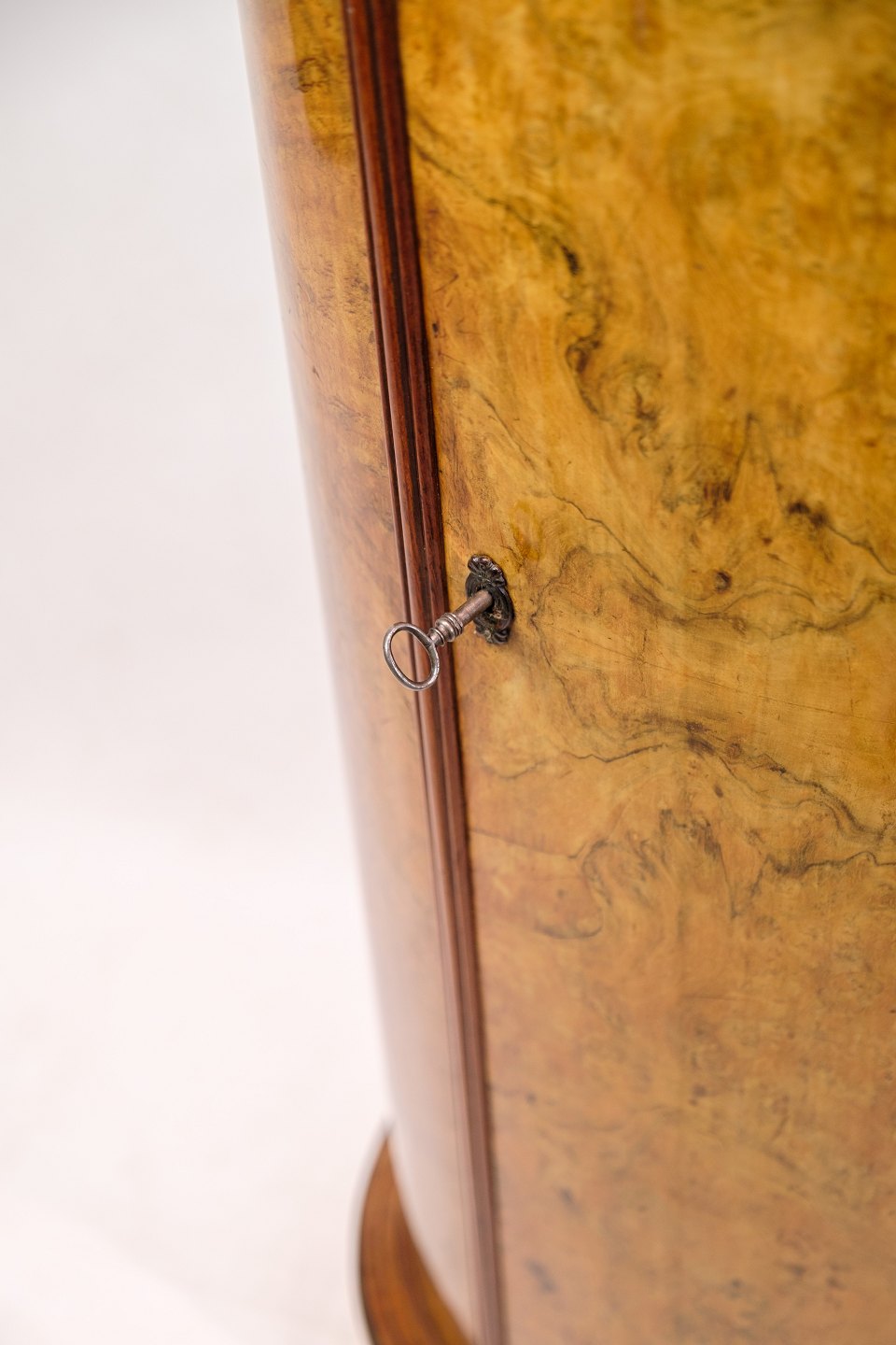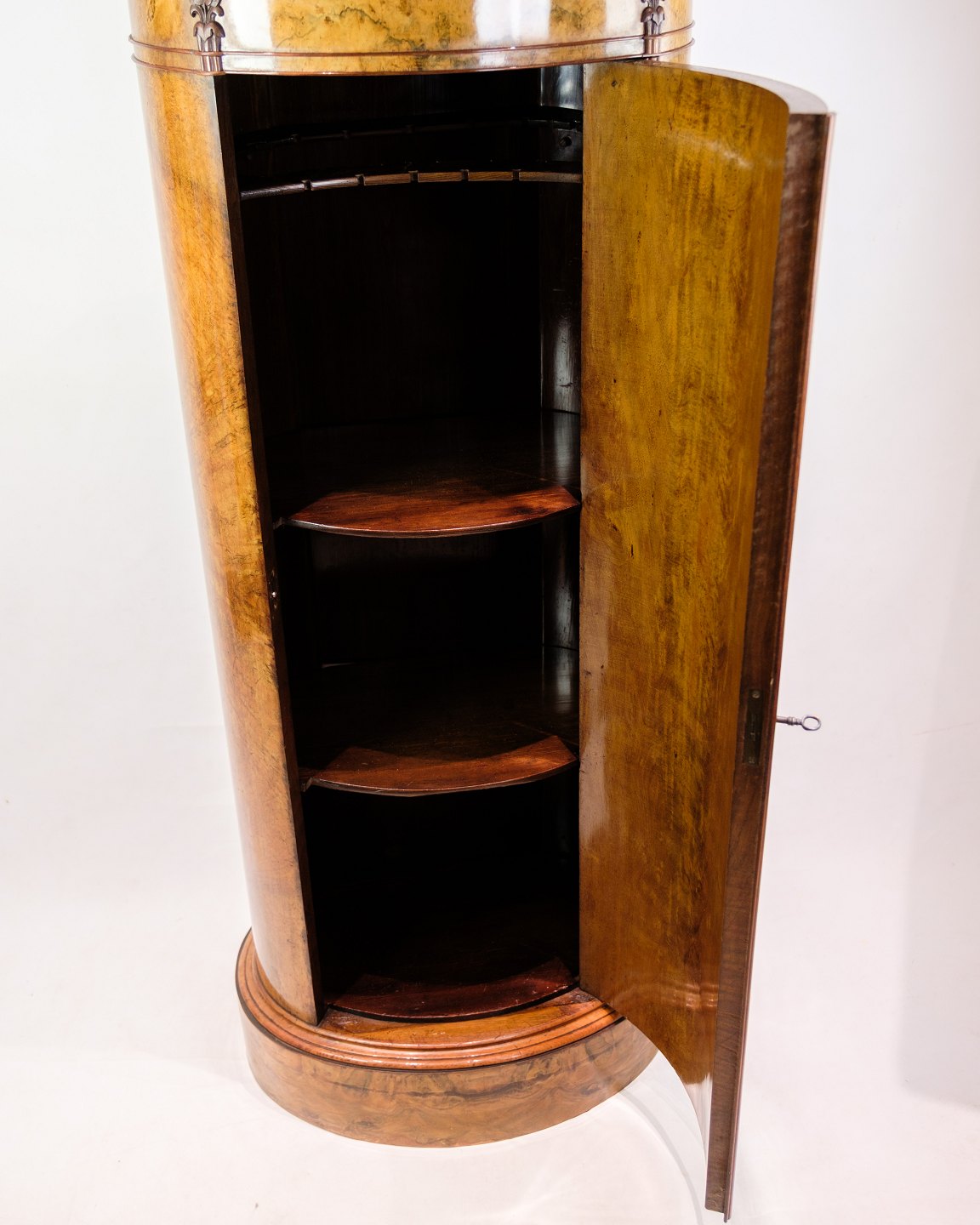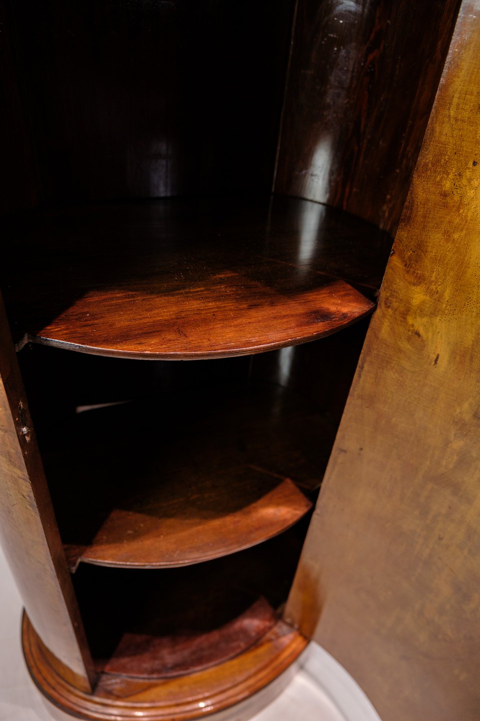 Ovalt piedestalskab fra omkring 1840’erne, udført i valnød og med håndpoleret overflade.
