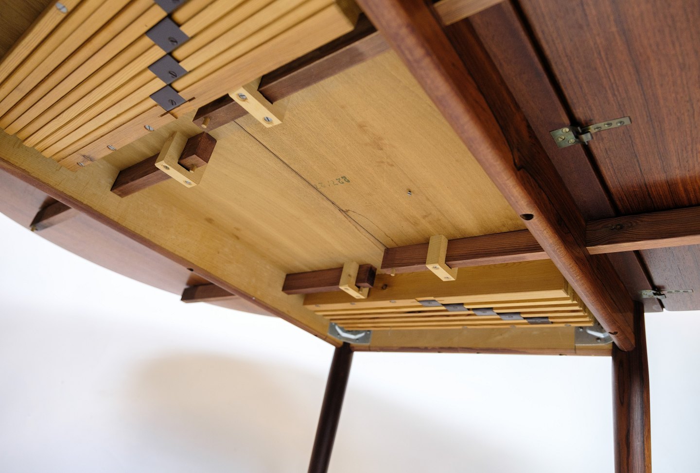 Dining table with flaps and pull-out in rosewood, designed by Arne Vodder, circa 1960s. Danish design with 2 extension leaves.