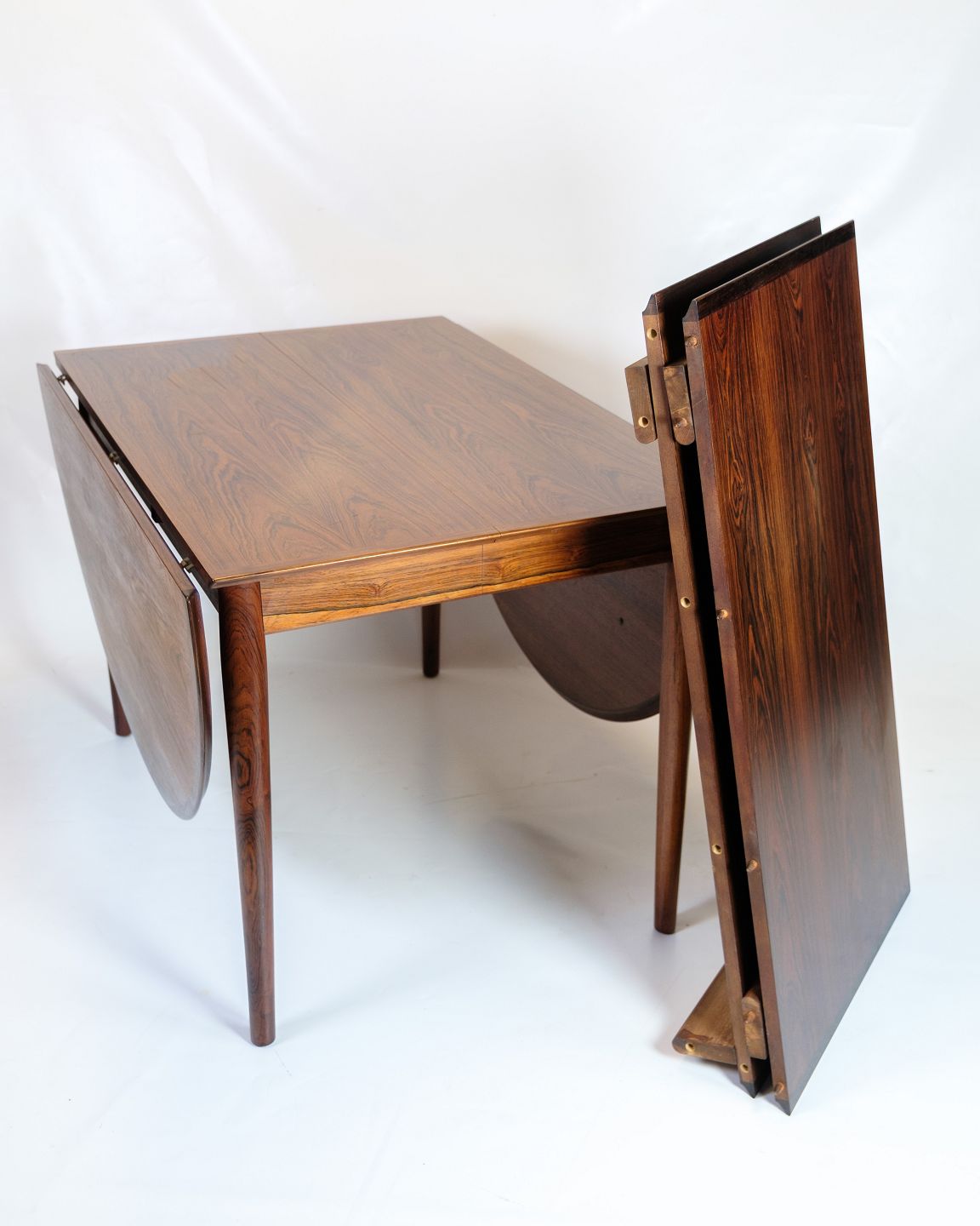 Spisebord med klapper og udtræk i palisander, designet af Arne Vodder, ca. 1960’erne. Dansk design med 2 tillægsplader.