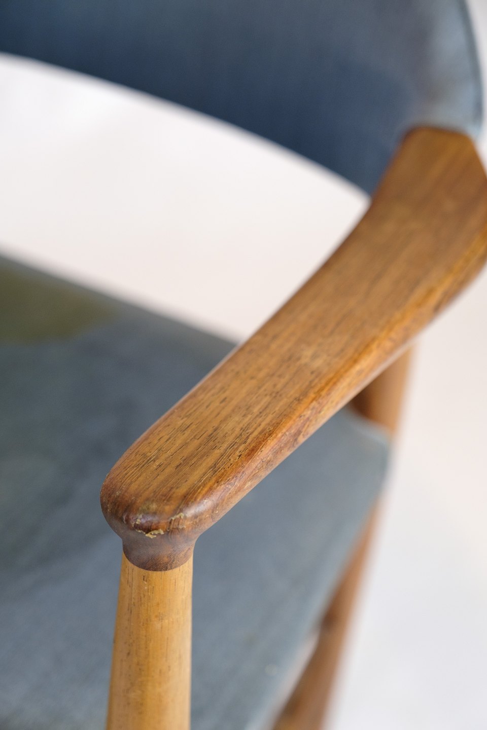 Danish armchair in teak with blue fabric seat designed by Kurt Olsen in the 1960s.