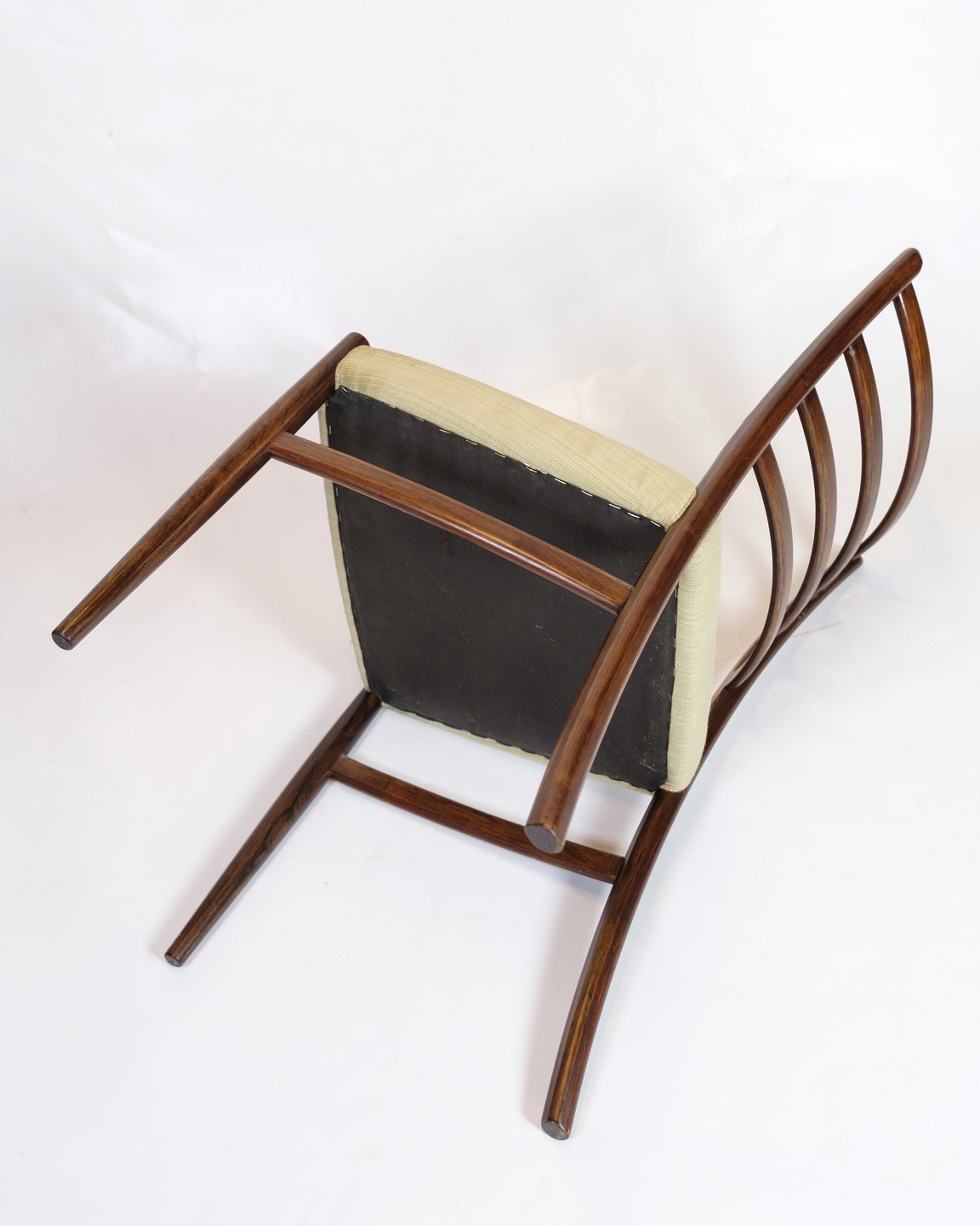 Dining chair in rosewood with light wool fabric, designed by N.O. Møller in the 1960s.