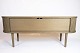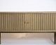 SolgtTV-møbel i gråolieret eg med jalousilåger og rundede former. Dansk design.