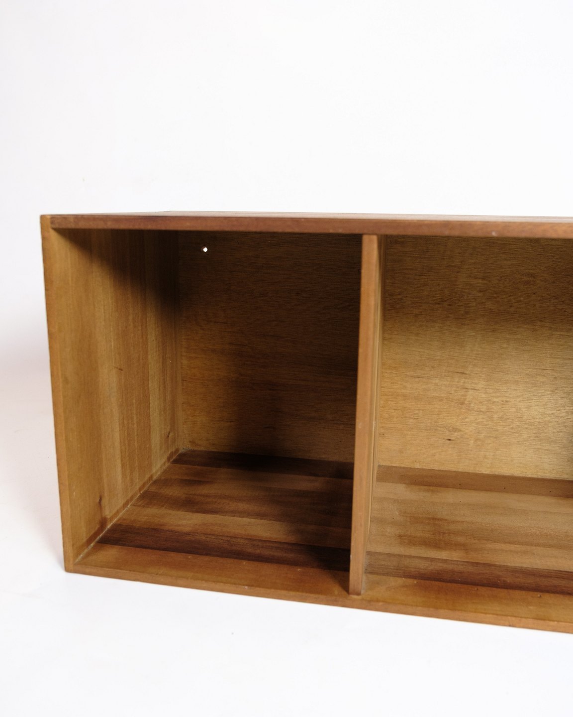 SoldBookcase in teak with mortise joints, Danish design from the 1960s. The bookcase is divided into two compartments and is well suited as both a wall-mounted unit or a standing module in a bookcase composition.