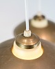 Ceiling lamp by Bent Karlby from the 1950/60s with three pendants in opal glass and brass.