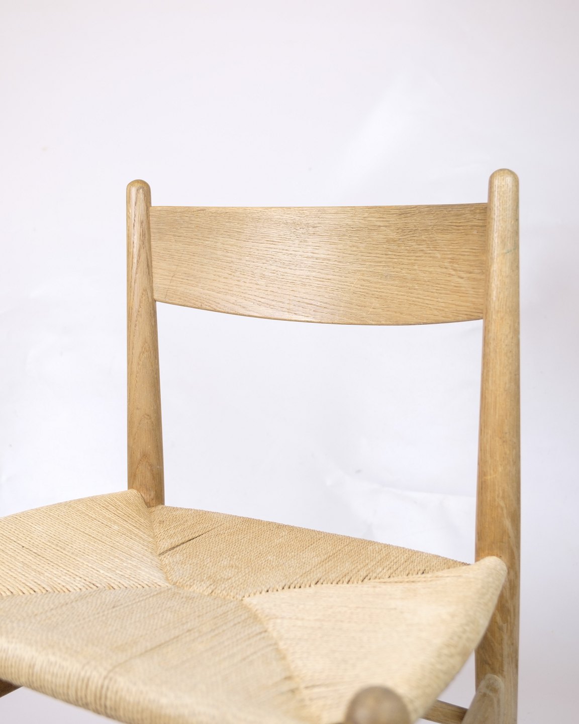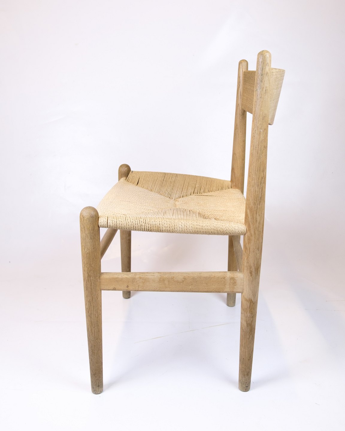 The chair is made of solid oak with a seat in hand-woven paper yarn.