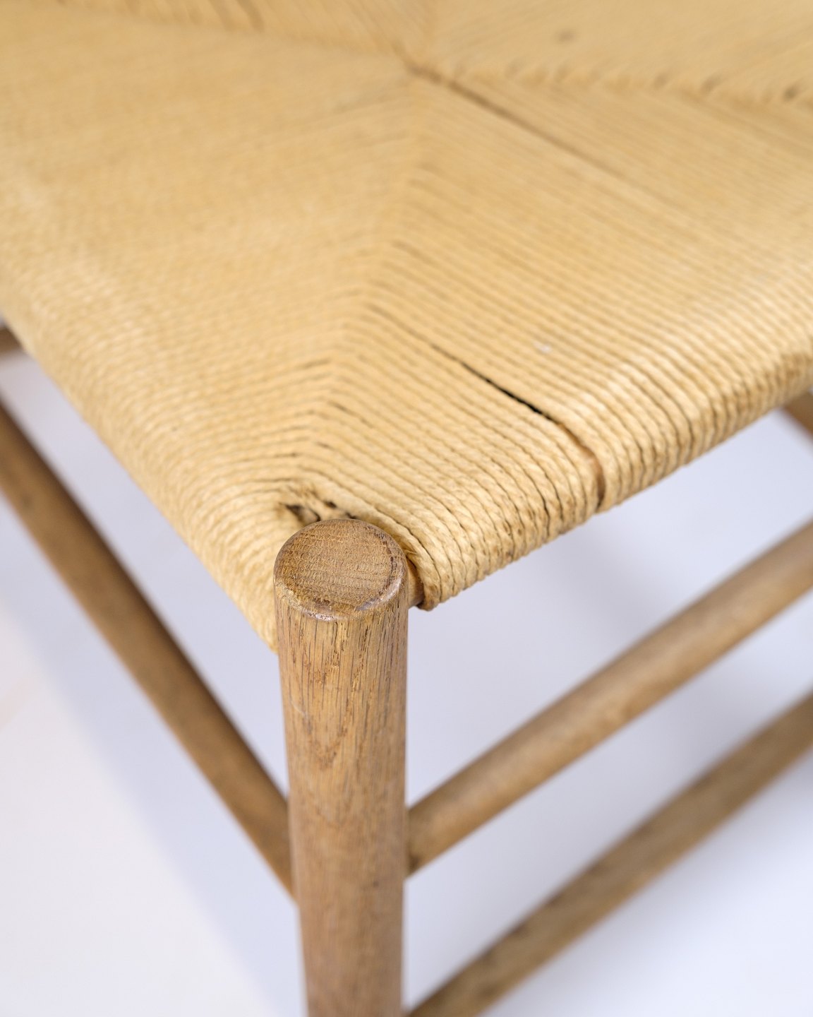 SoldJ39 Folkestolen by Børge Mogensen for FDB Møbler. Oak with paper yarn weave. Danish design classic from the 1960s.