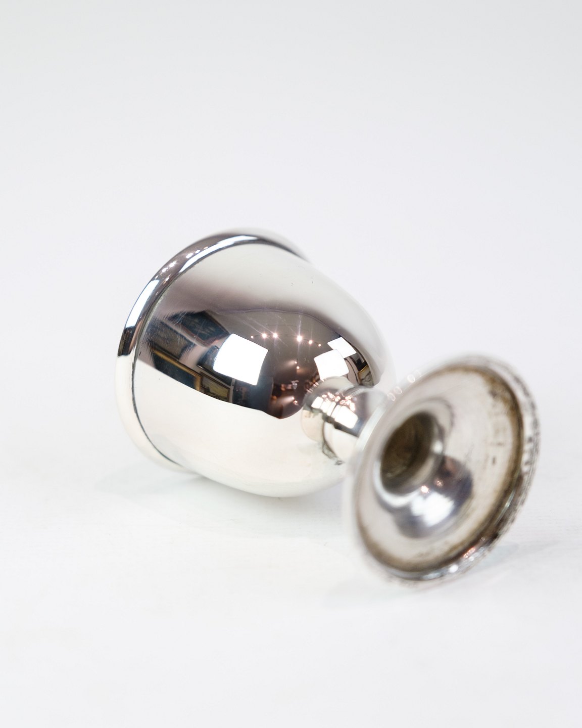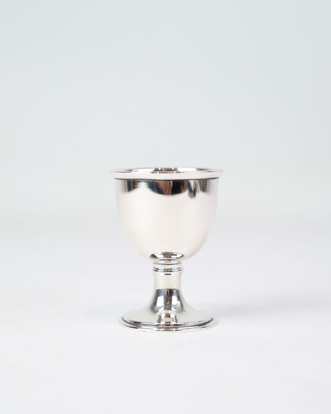 SolgtÆggebæger i ægte sølv. Enkelt design uden indgravering. Højde 6,3 cm, diameter 4,5 cm.
