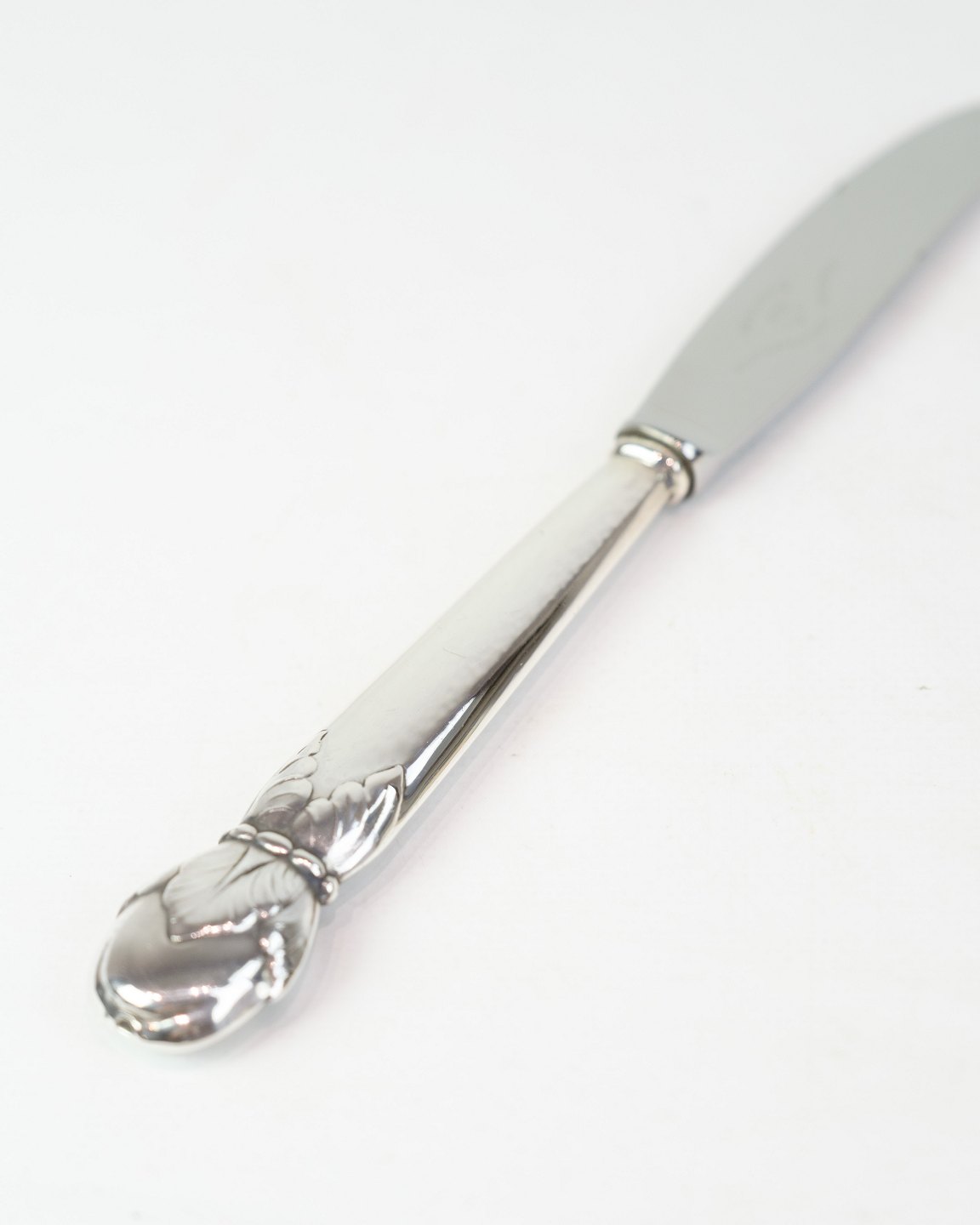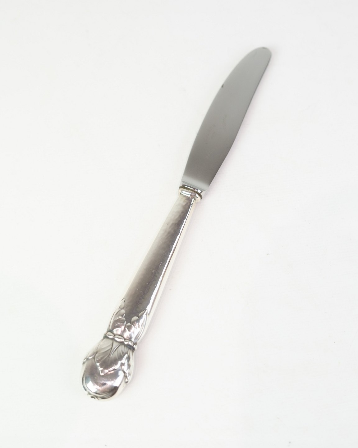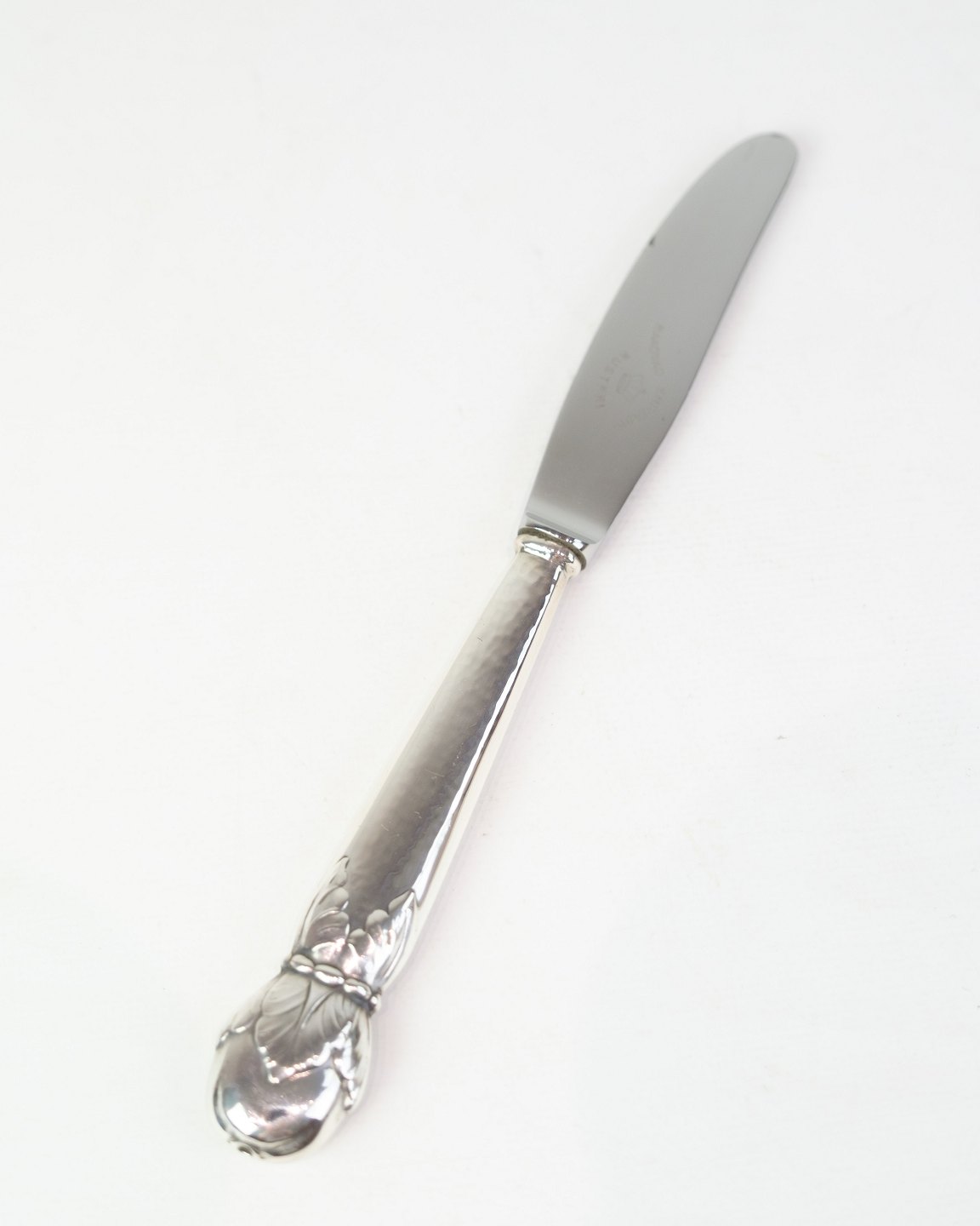 Table knife from A.C. Illum, Copenhagen. Three-tower silver, hallmarked 825, with steel blade, circa mid-1900s. Length 22 cm. Illum was known for its high quality.