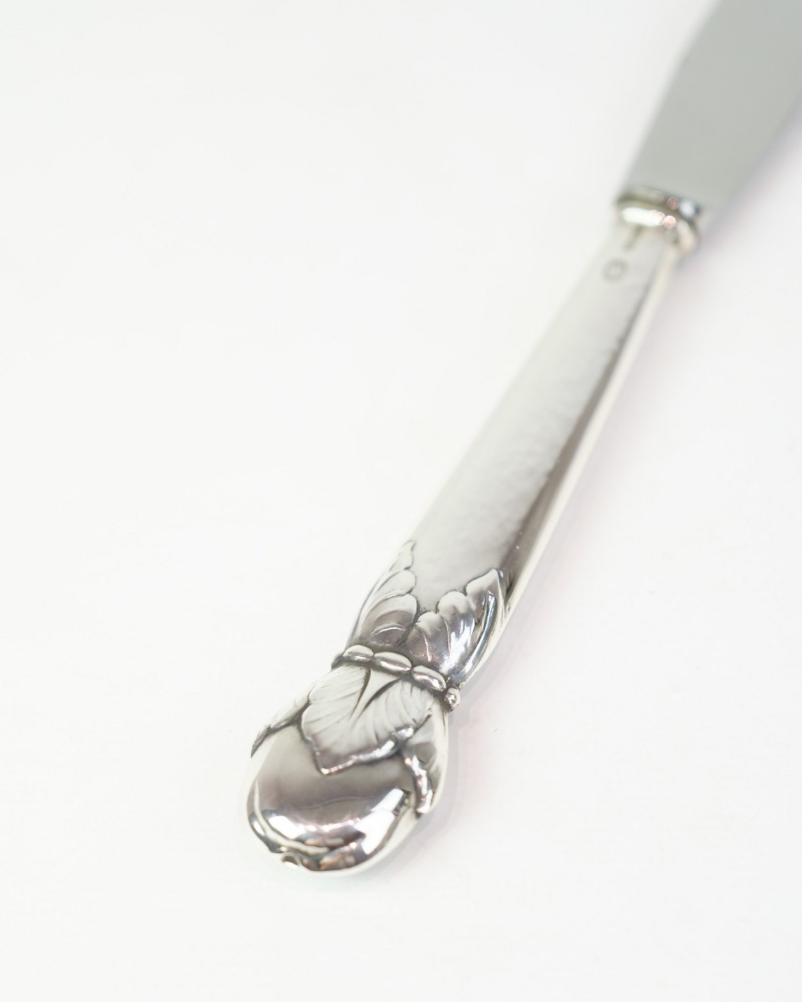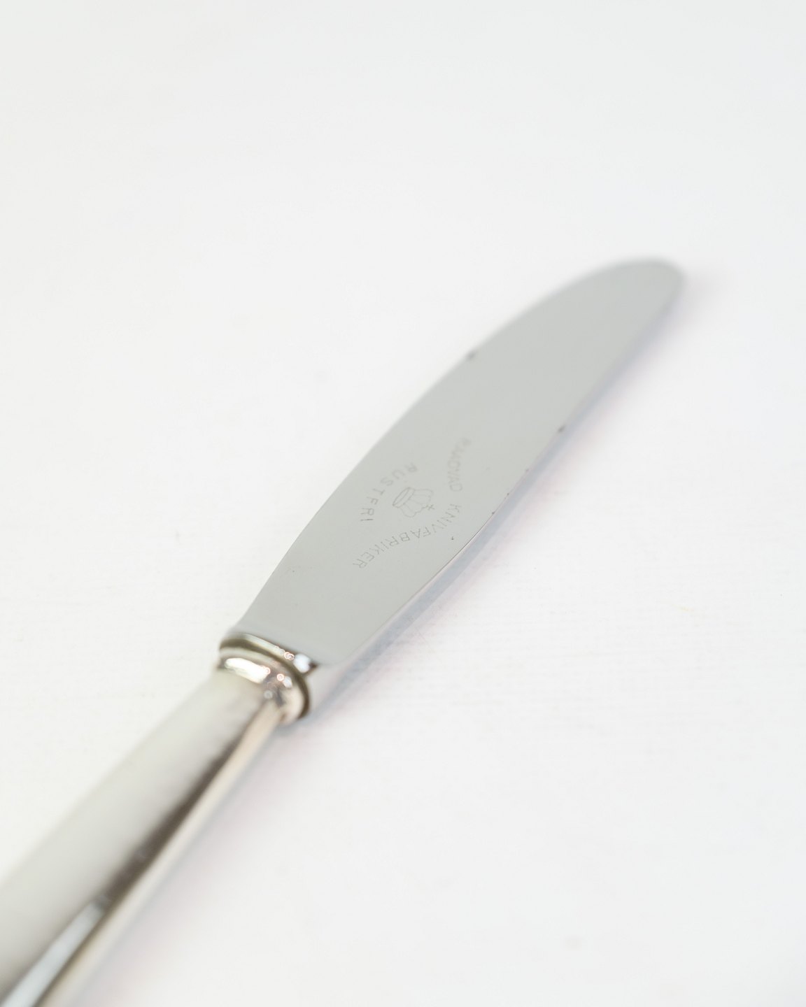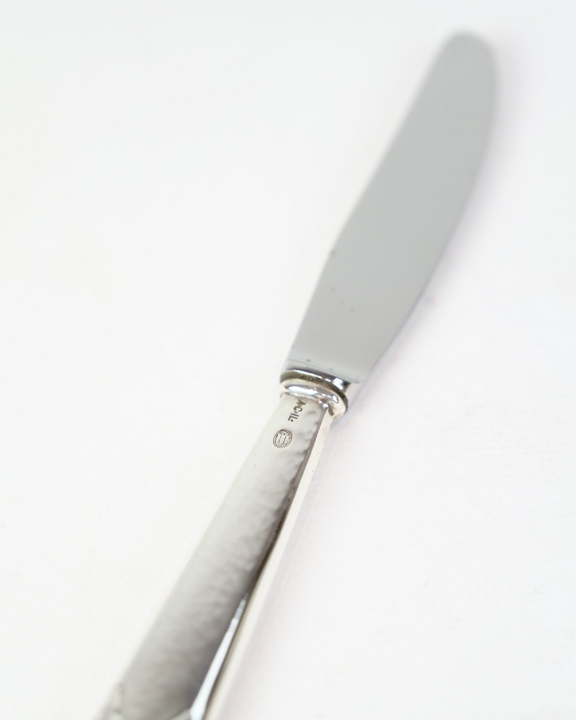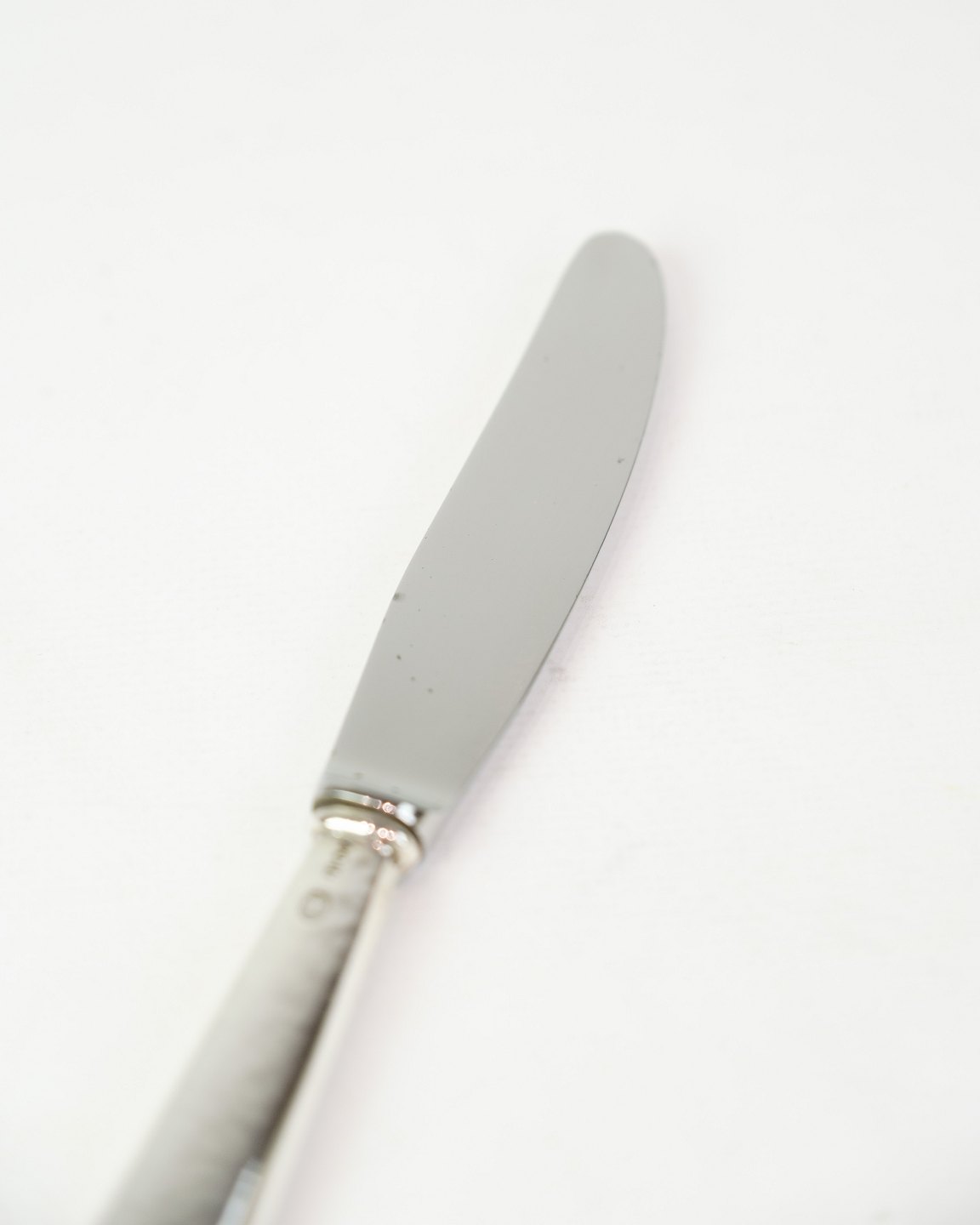 Table knife from A.C. Illum, Copenhagen. Three-tower silver, hallmarked 825, with steel blade, circa mid-1900s. Length 22 cm. Illum was known for its high quality.