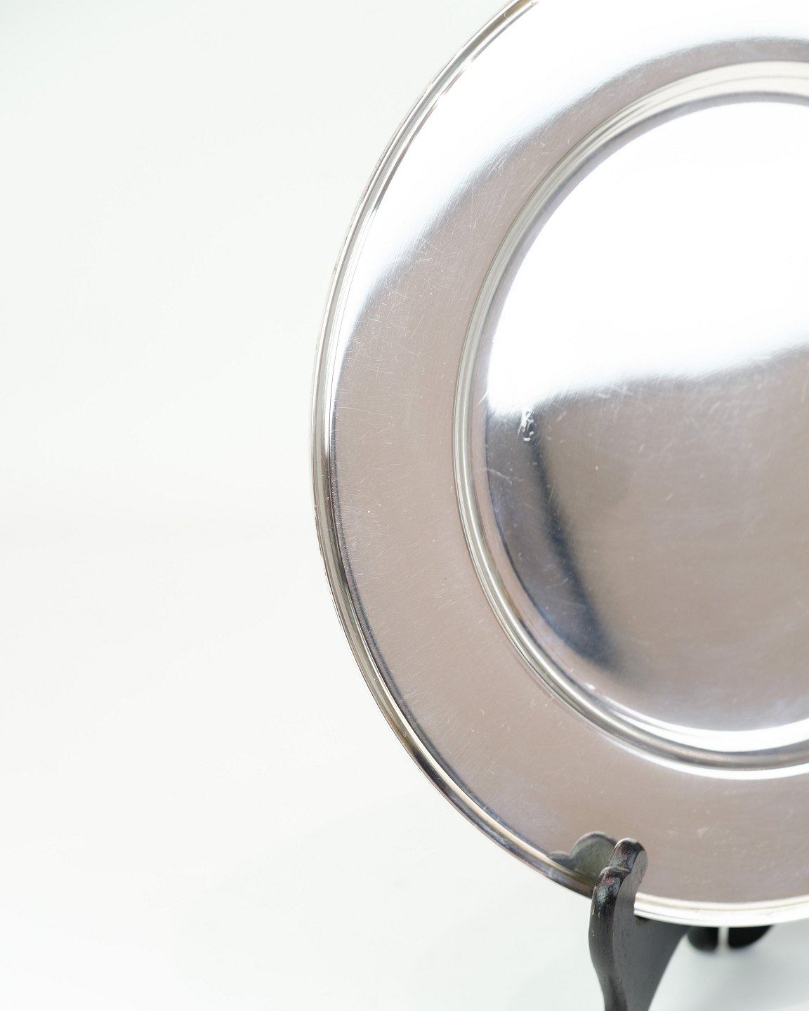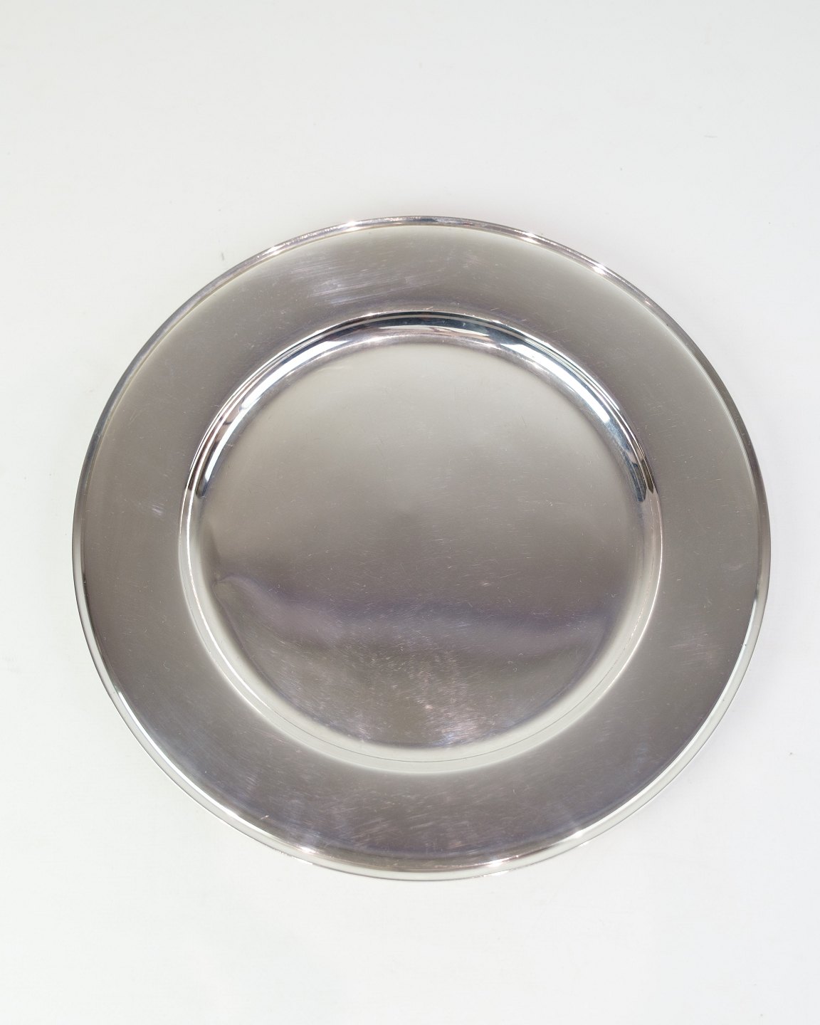 Georg Jensen dækketallerken i sterling sølv, Pyramide model No. 600E. Diameter 26 cm, vægt 522 g. Elegant dansk designklassiker.