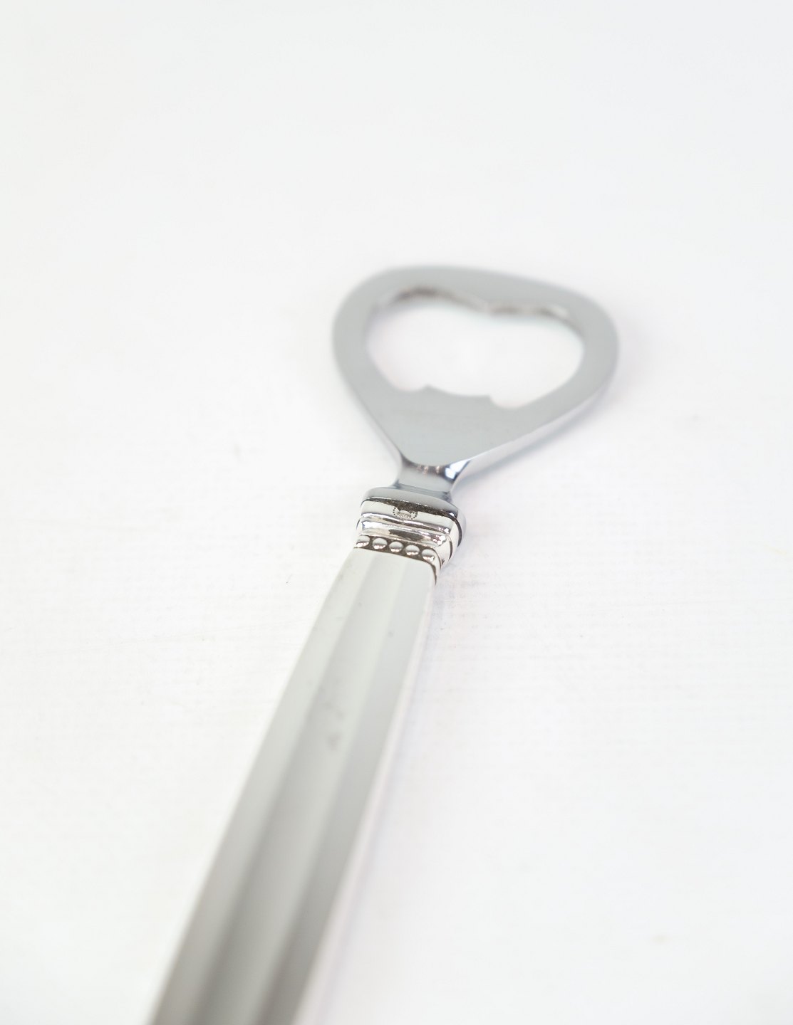 Georg Jensen bottle opener in King pattern. Sterling silver and stainless steel. Design by Johan Rohde. Length 16 cm.