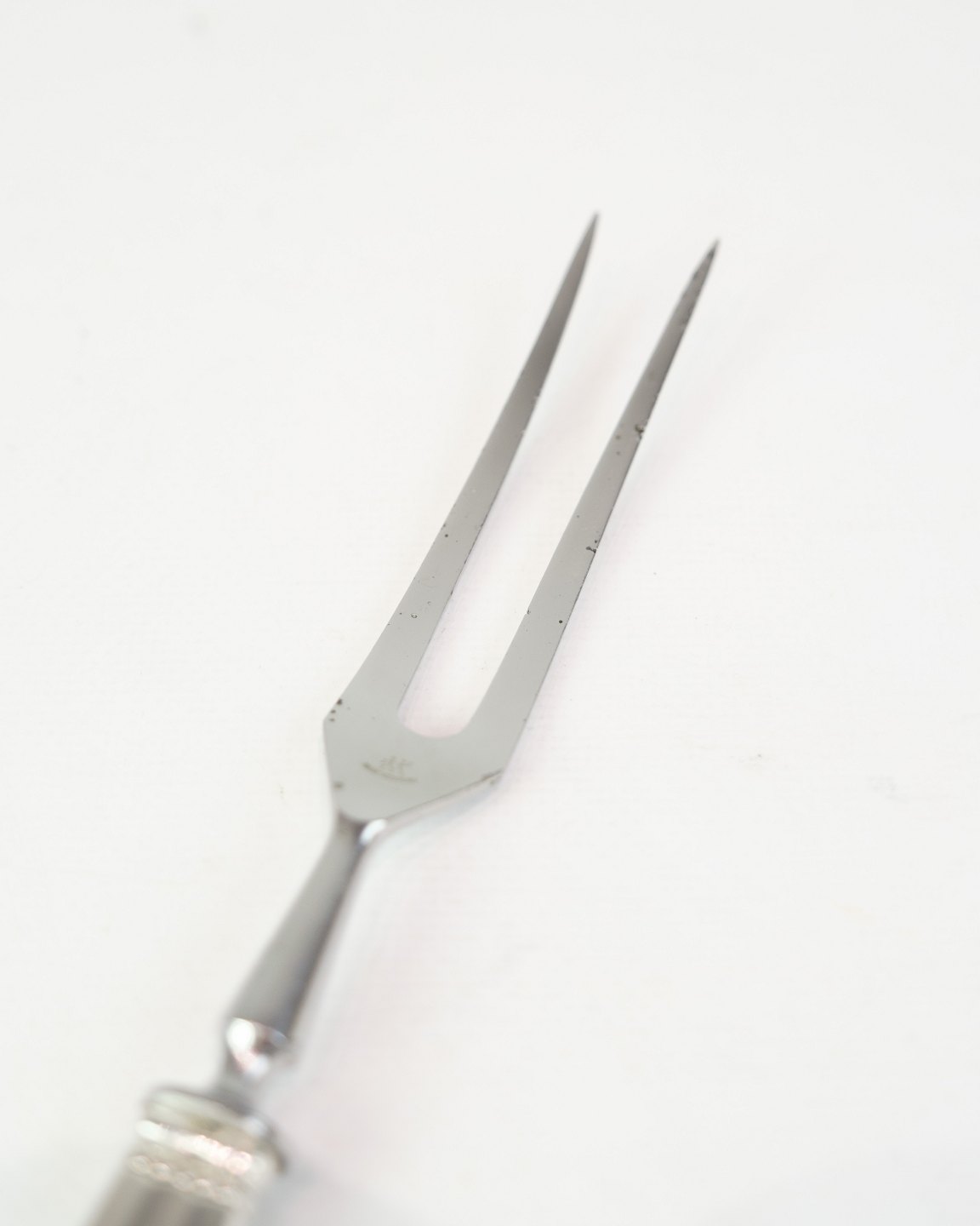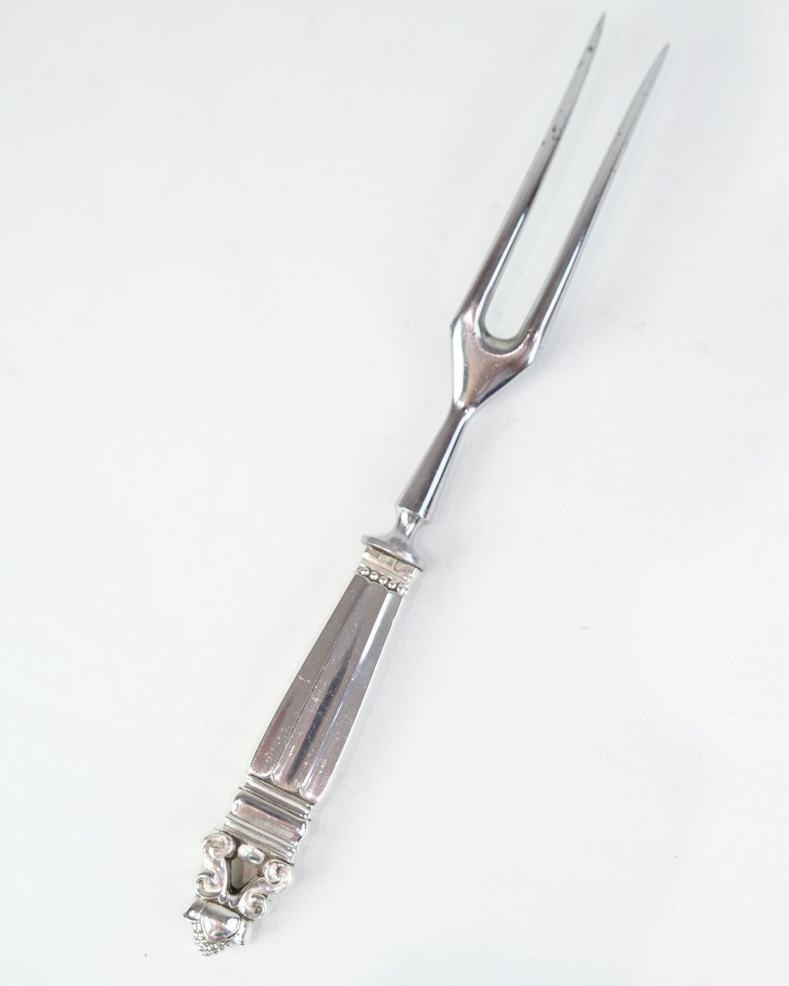 Georg Jensen forskærergaffel i sølv, mønster Konge. Designet af Johan Rohde i 1915. Længde 25 cm. Klassisk dansk sølvarbejde.