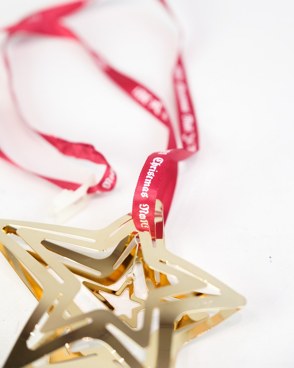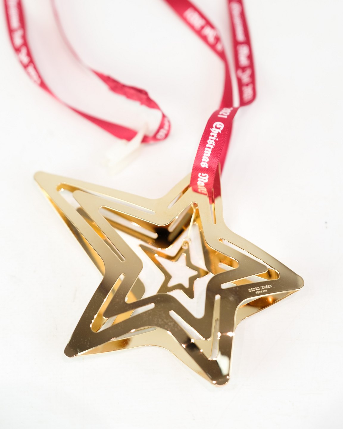 Georg Jensen juleuro fra 2021, udført som et stjerneskud i forgyldt metal. Designet er en del af den traditionsrige julekollektion, som siden 1980’erne har været et samlerobjekt for både danske og internationale designelskere.