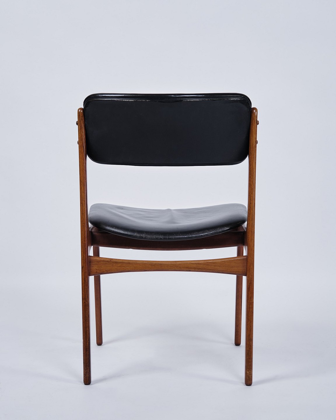 Set of six Erik Buch dining chairs, model OD49. Rosewood with black leather. O.D. Møbler, 1950s.
