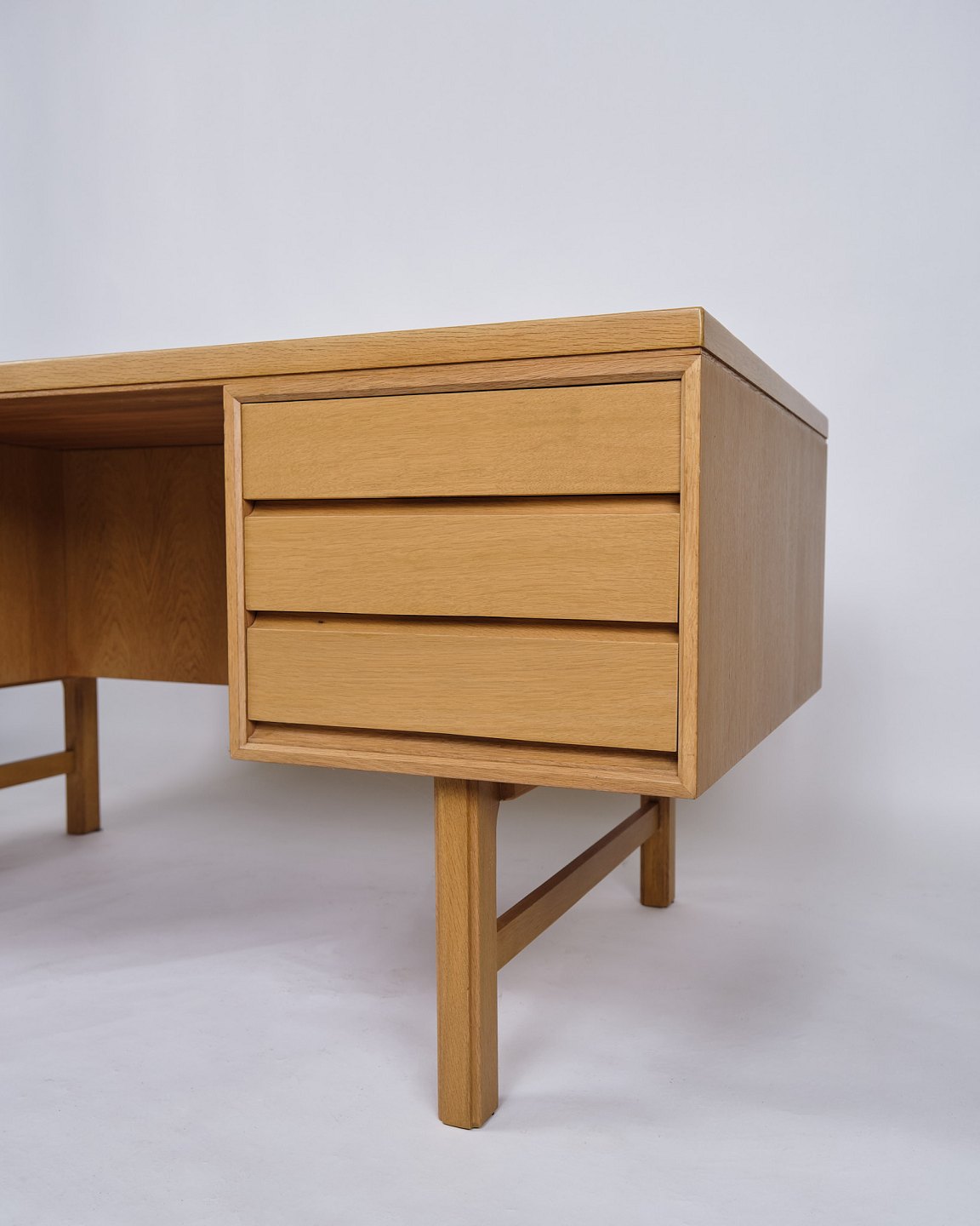 Fritstående Skrivebord - Seks Skuffer - Egetræ - Omann Junior - Dansk Design - 1960erne