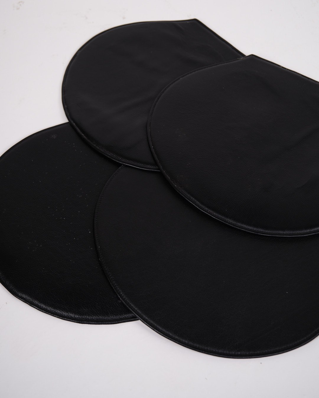 SoldSet of four black leather cushions for Arne Jacobsen chair model 3107. Fit design. Comfortable and stylish accessory for Danish design classic.