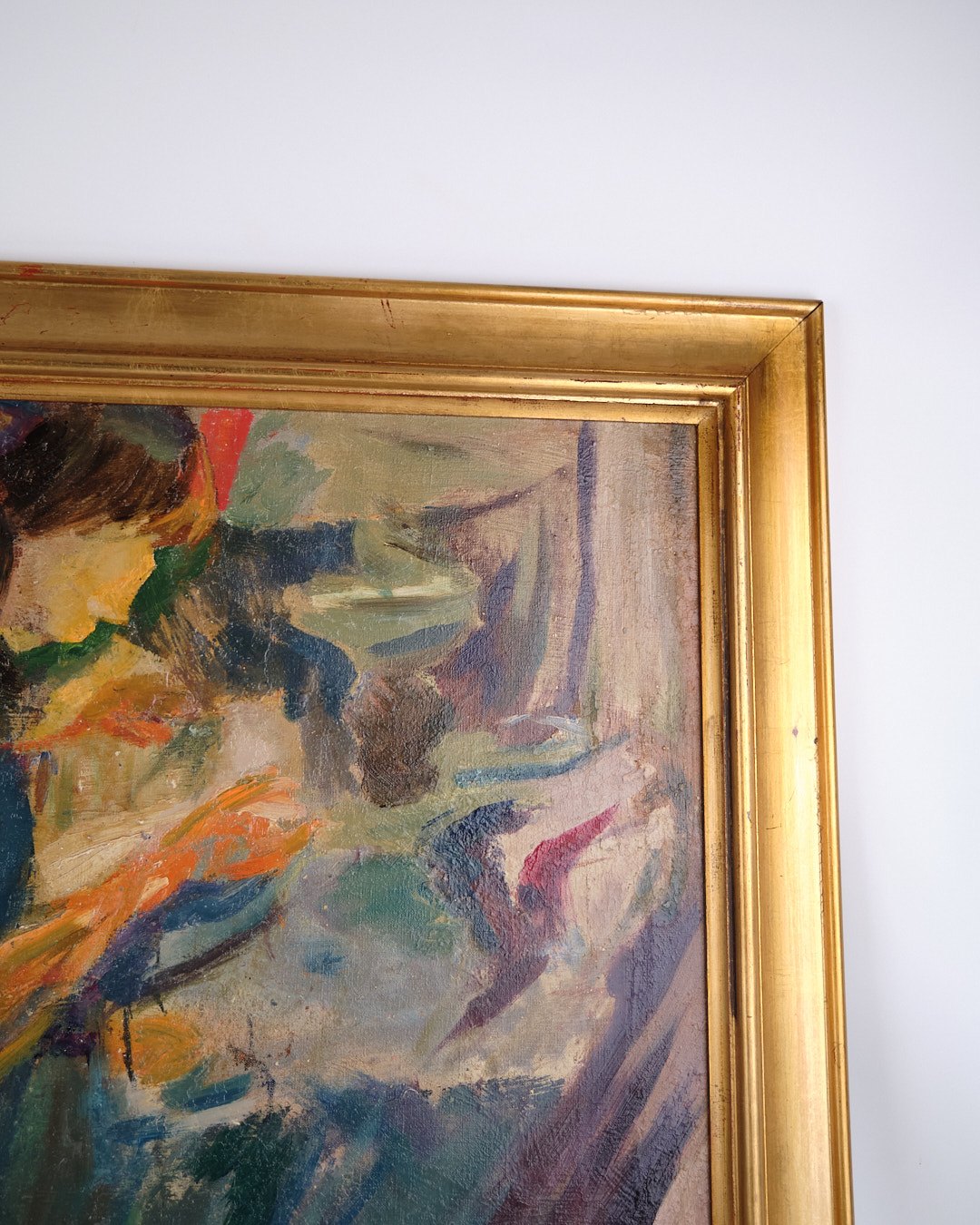 SoldAbstract oil painting of a woman from the 1930s. Oil on canvas with a gold frame.