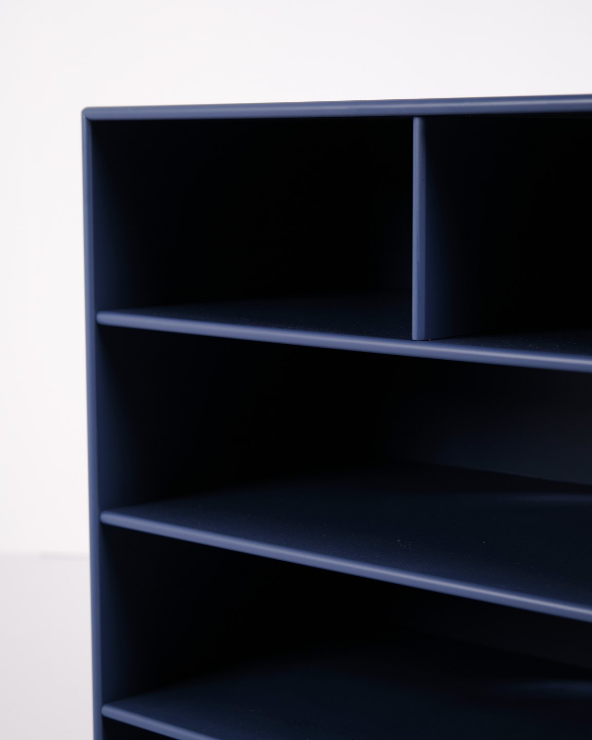 Montana bookcase in blue. Equipped with four open shelves, suitable for storage or display in the living room, office or hallway. A classic Montana module with a simple structure and high functionality.