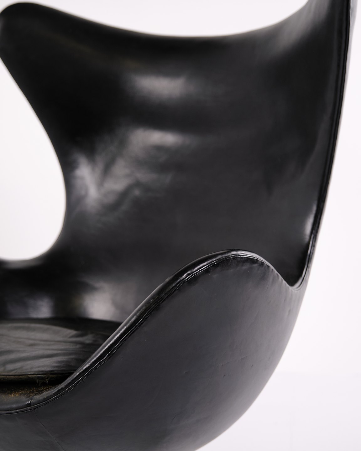 The Egg Chair – Arne Jacobsen – Black Original Leather – Fritz Hansen – 1950's - Early Model