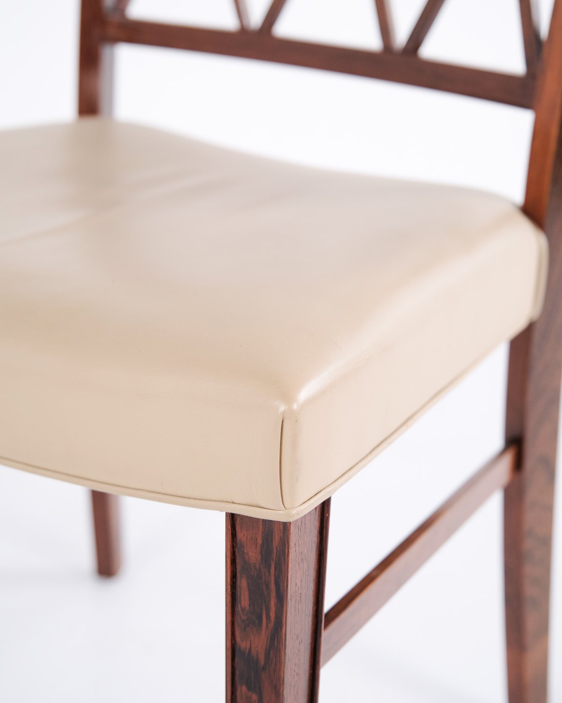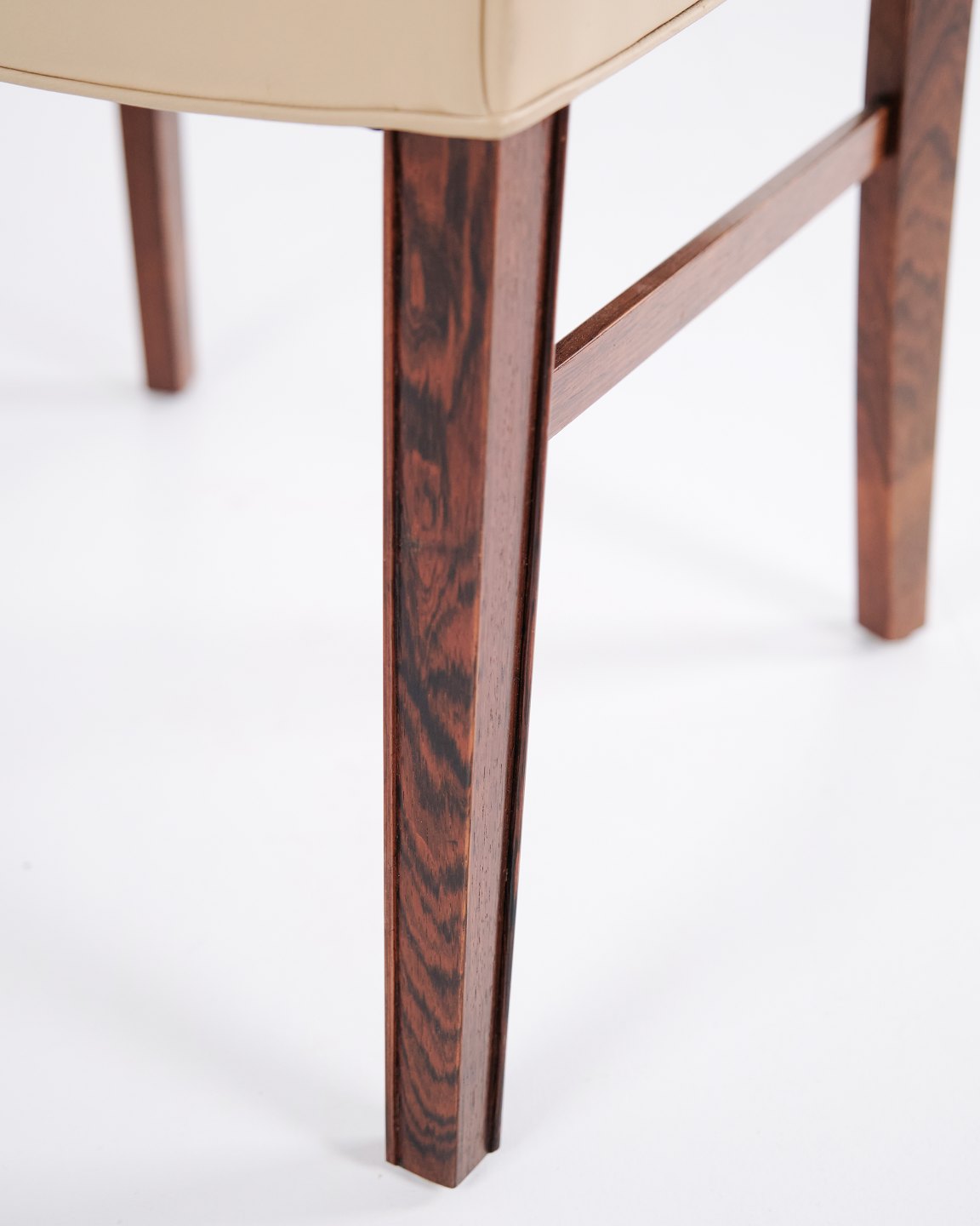 Ensemble de quatre chaises de salle à manger par Ole Wanscher pour A.J. Iversen. Palissandre et cuir crème. Design danois des années 1960.