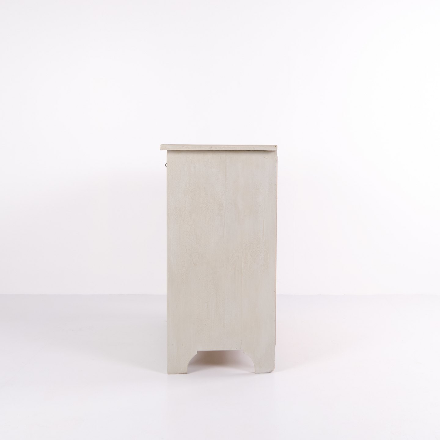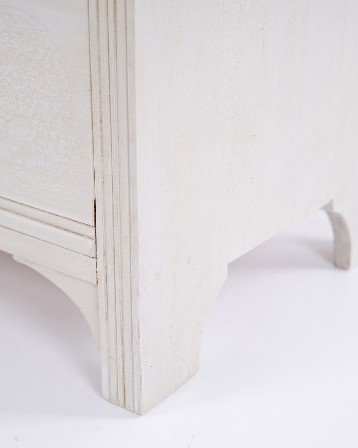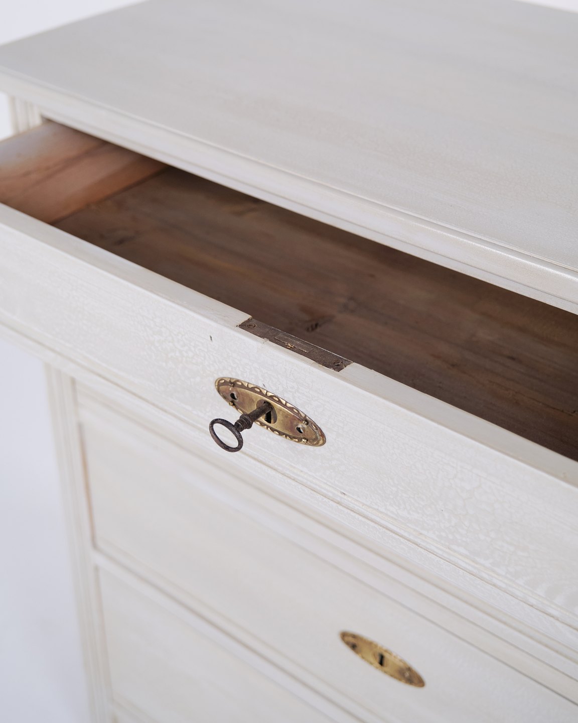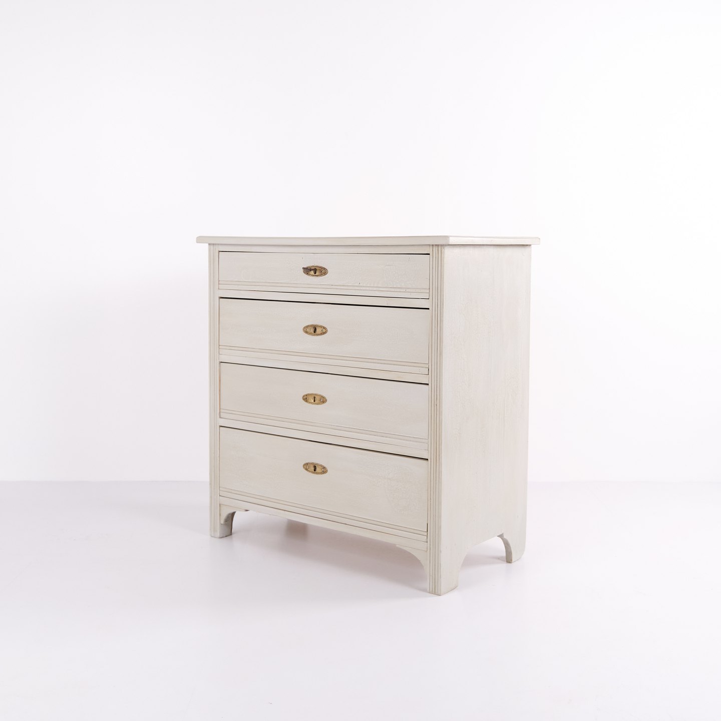 Antique chest of drawers from the 1890s with four drawers. Grey painted wood and classic design language with attractive patina.