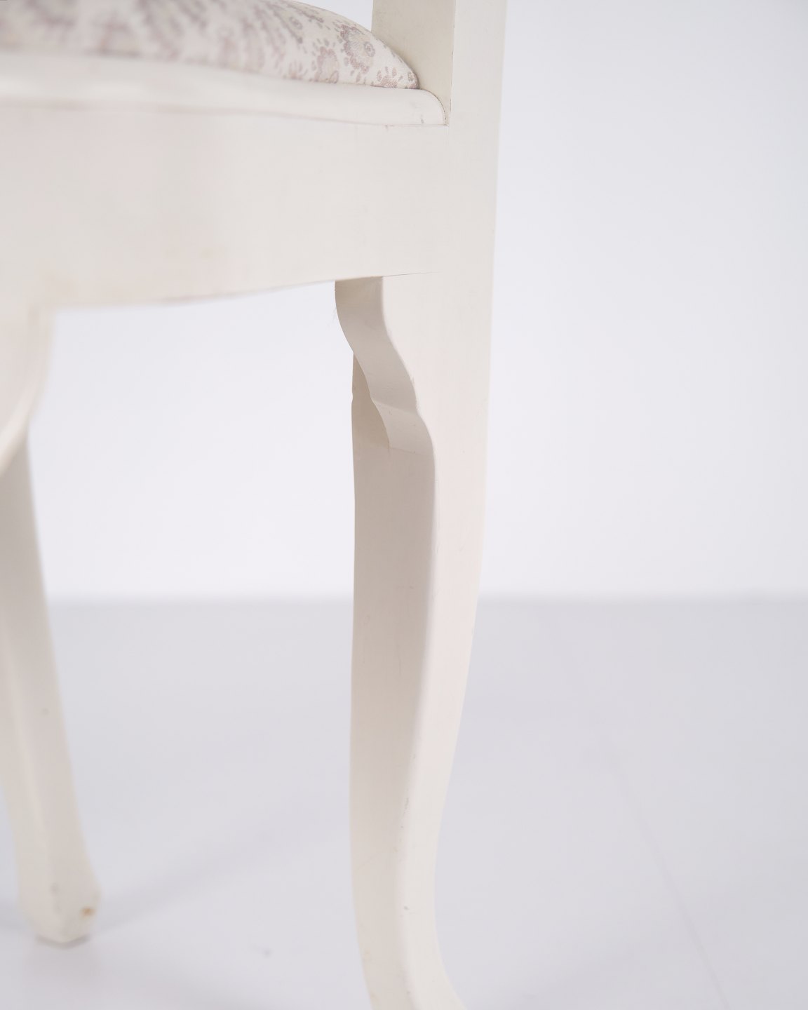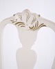 Antikke spisebordsstole i ny rokoko stil fra 1920’erne. Sæt af 6 hvidmalede stole med dekorative detaljer.