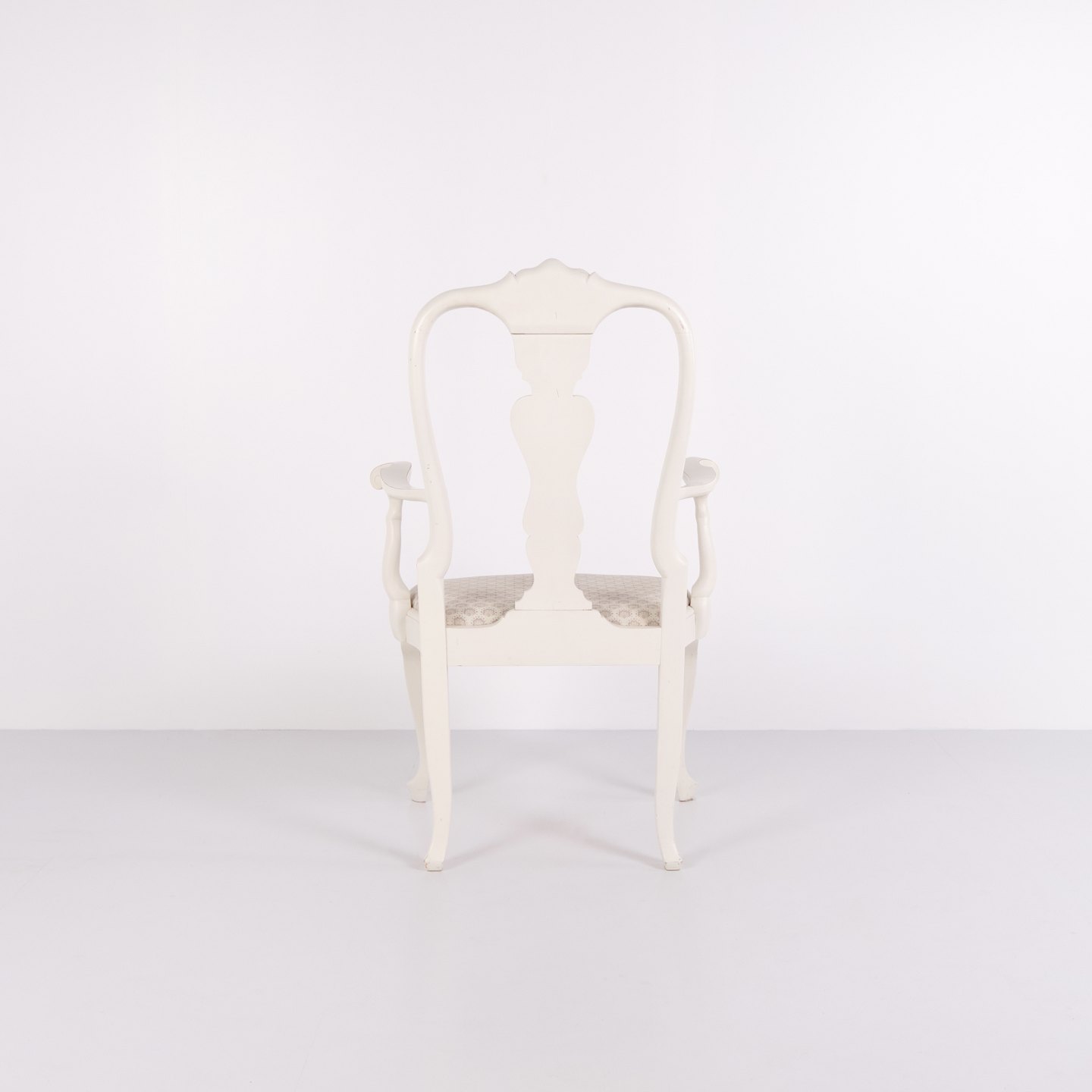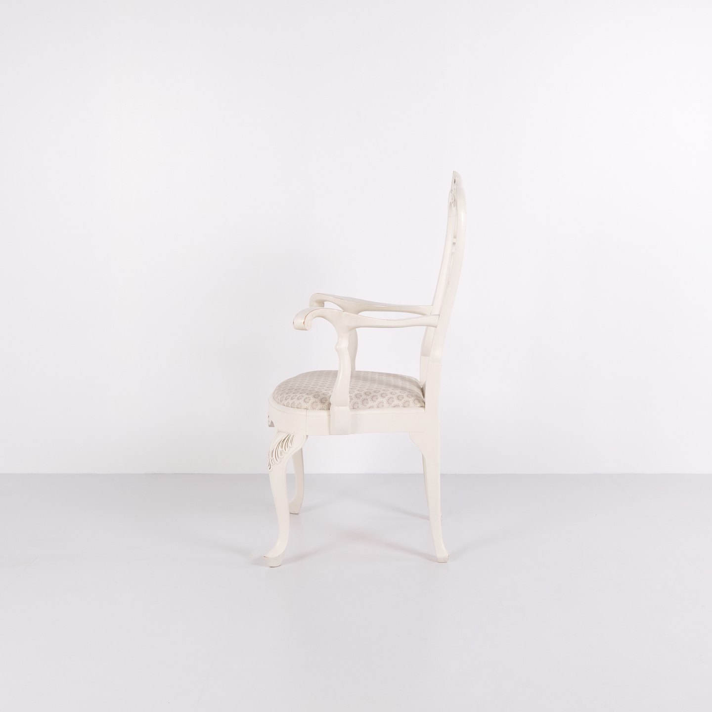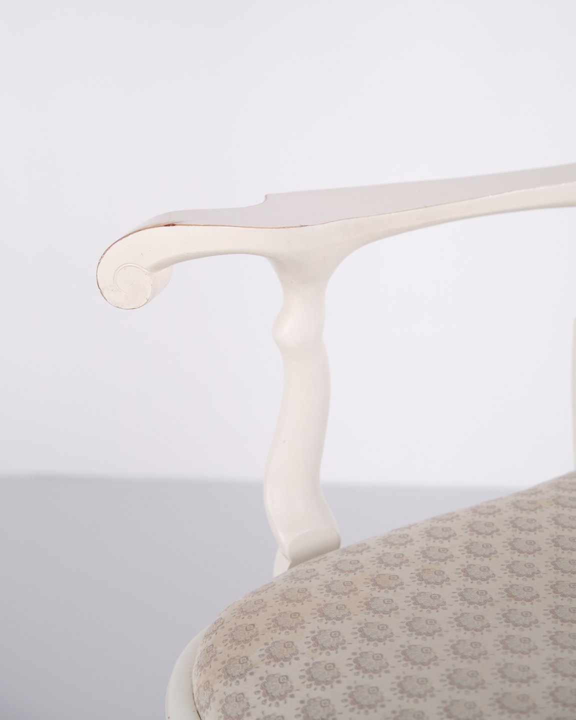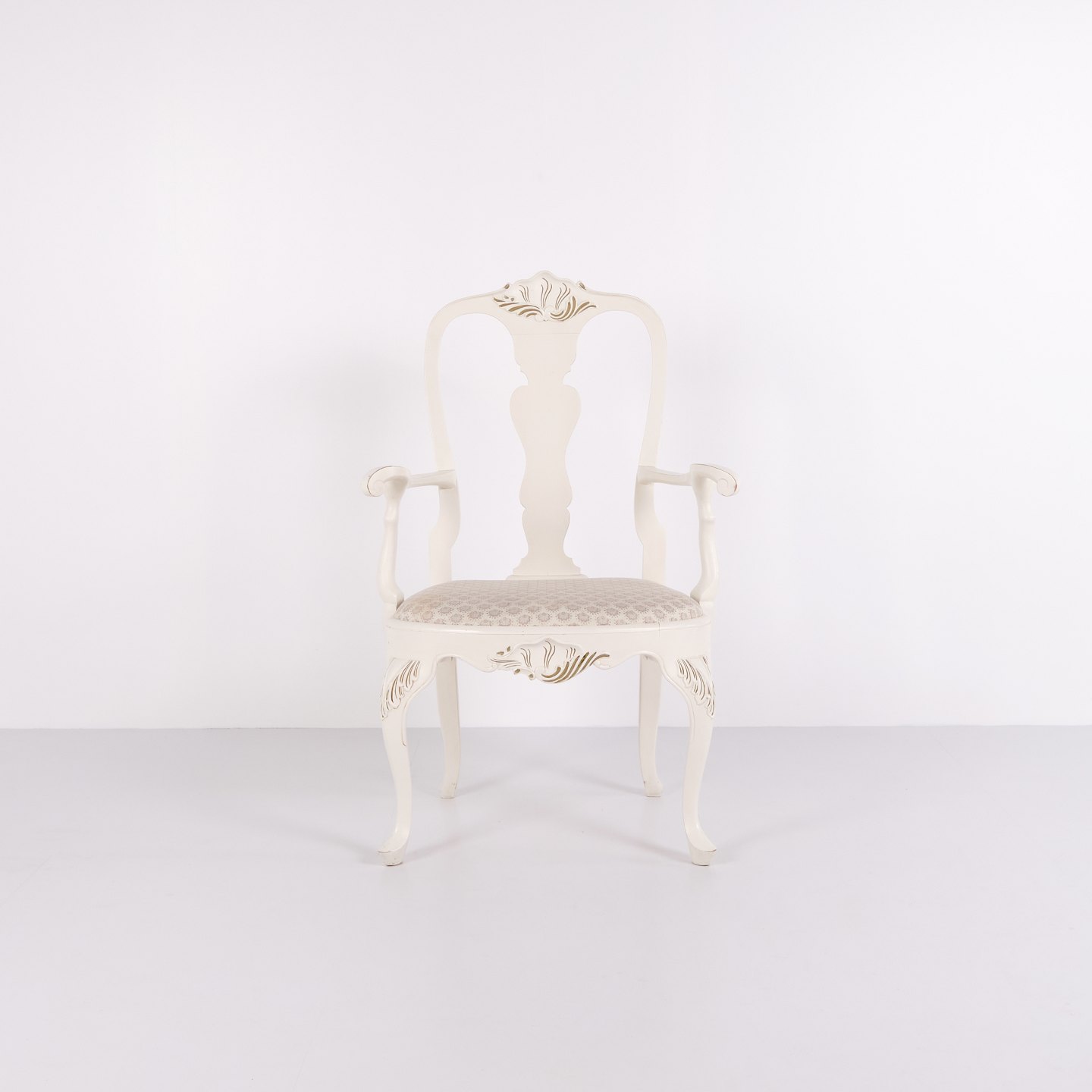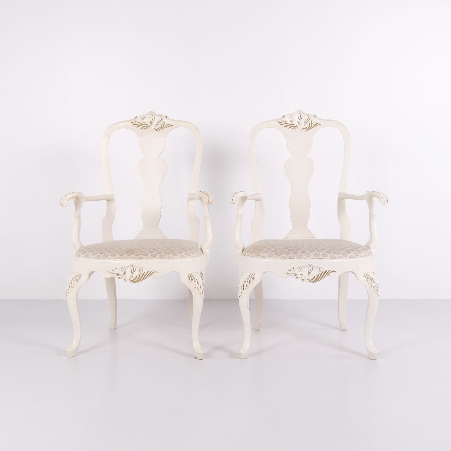 Antique armchairs from the 1920s in neo rococo style. Set of 2 white painted armchairs with decorative details. Antique rococo furniture style 1920s.