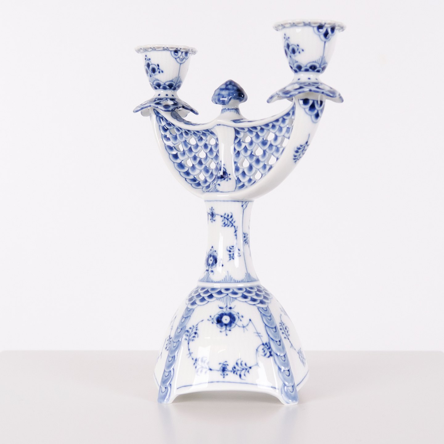 Zweiarmiger Kerzenleuchter – Musselmalet Vollspitze – Modell 1169 – Royal Copenhagen