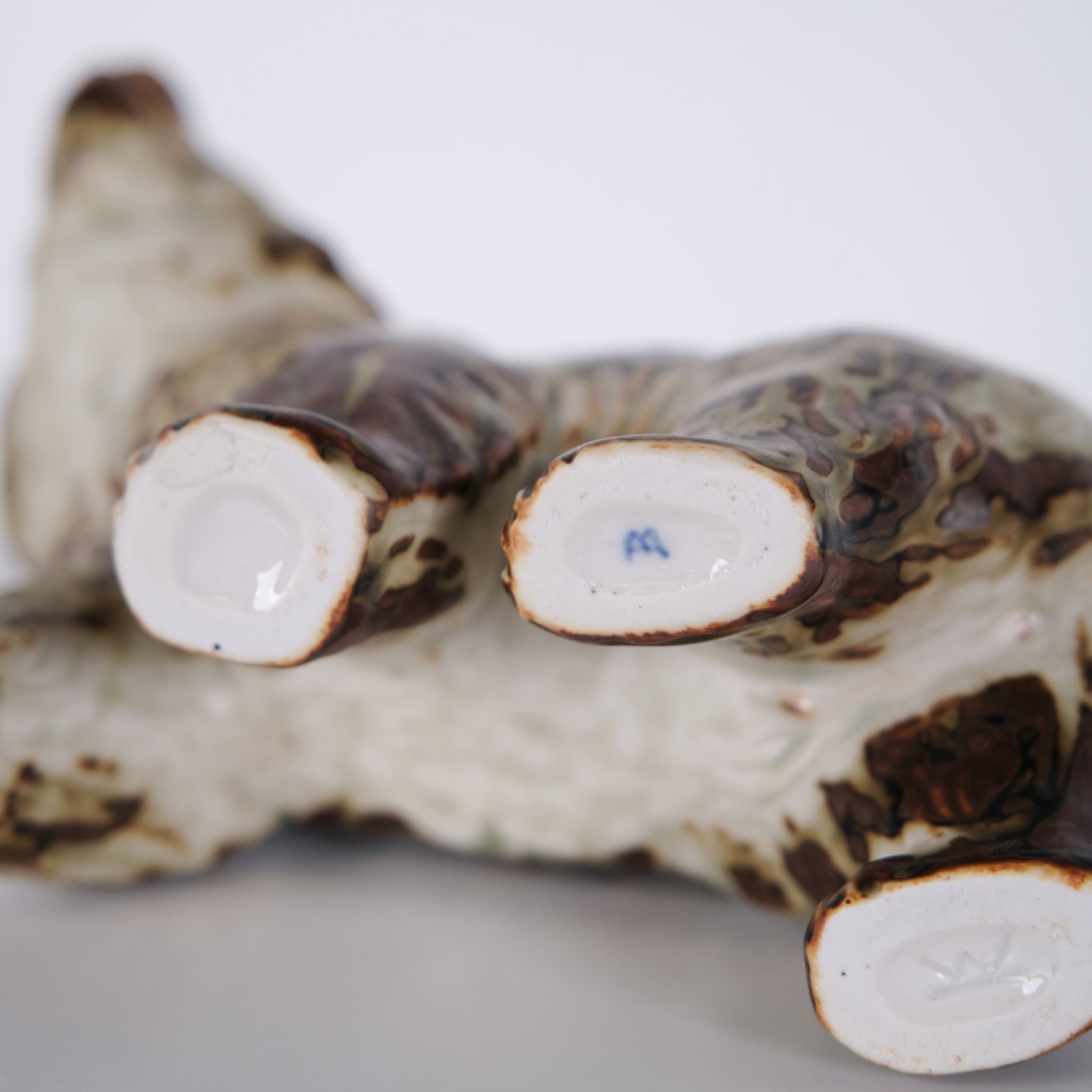 Keramikfigur mit Bärenmotiv, Modell 20155, entworfen von Knud Kyhn für Royal Copenhagen. Aus Steinzeug gefertigt und um 1960 bei Royal Copenhagen produziert. Das Modell gehört zu Knud Kyhns Tierfiguren und ist dem dänischen Keramikdesign der Mitte des 20. Jahrhunderts zuzuordnen.