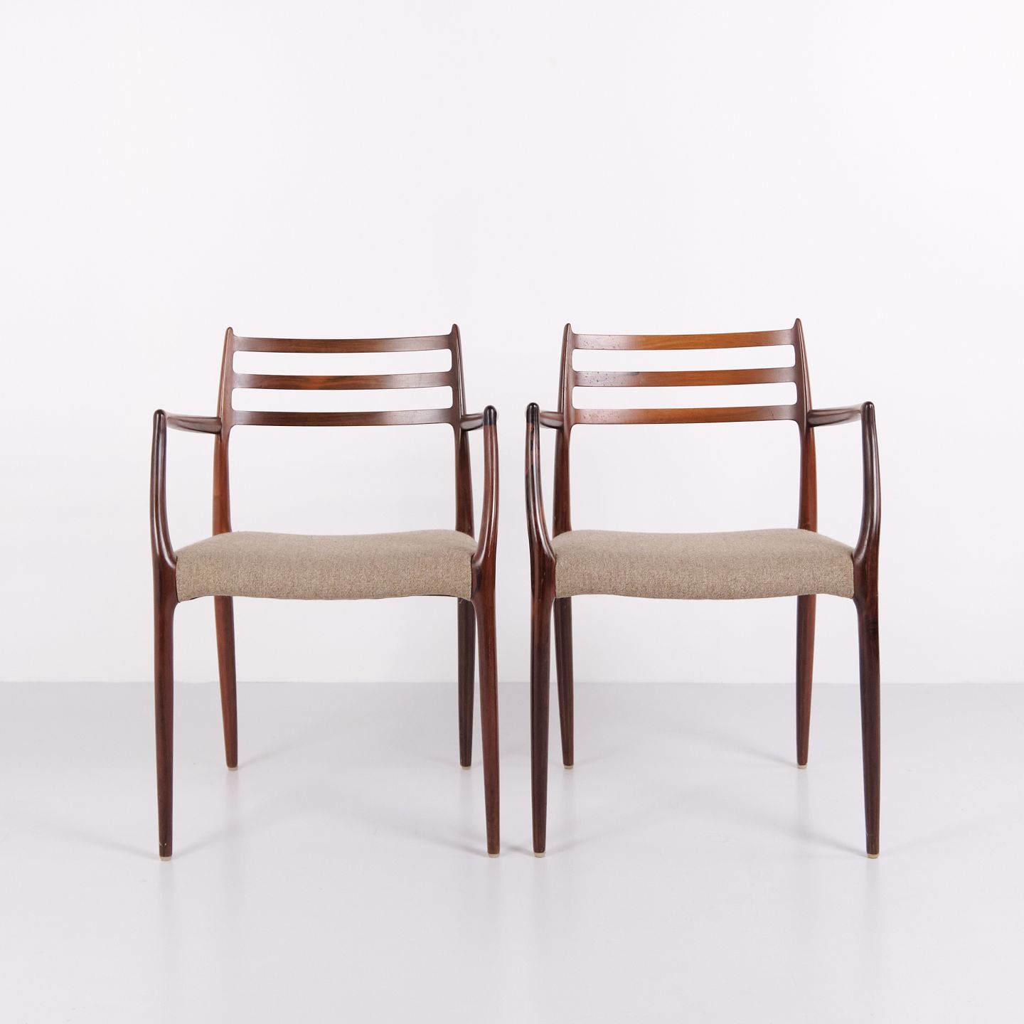 Armchairs, model 62, designed in 1962. Executed in rosewood and known for precise joinery and an ergonomic construction. Model 62 is regarded as one of Niels Otto Møller’s most recognised chair designs and represents Danish furniture design from the early 1960s.
