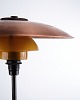 PH 3.5/2 table lamp designed by Poul Henningsen and produced by Louis Poulsen in the 1930s. The lamp is made with a top shade in copper, amber glass shades and a base in burnished brass.