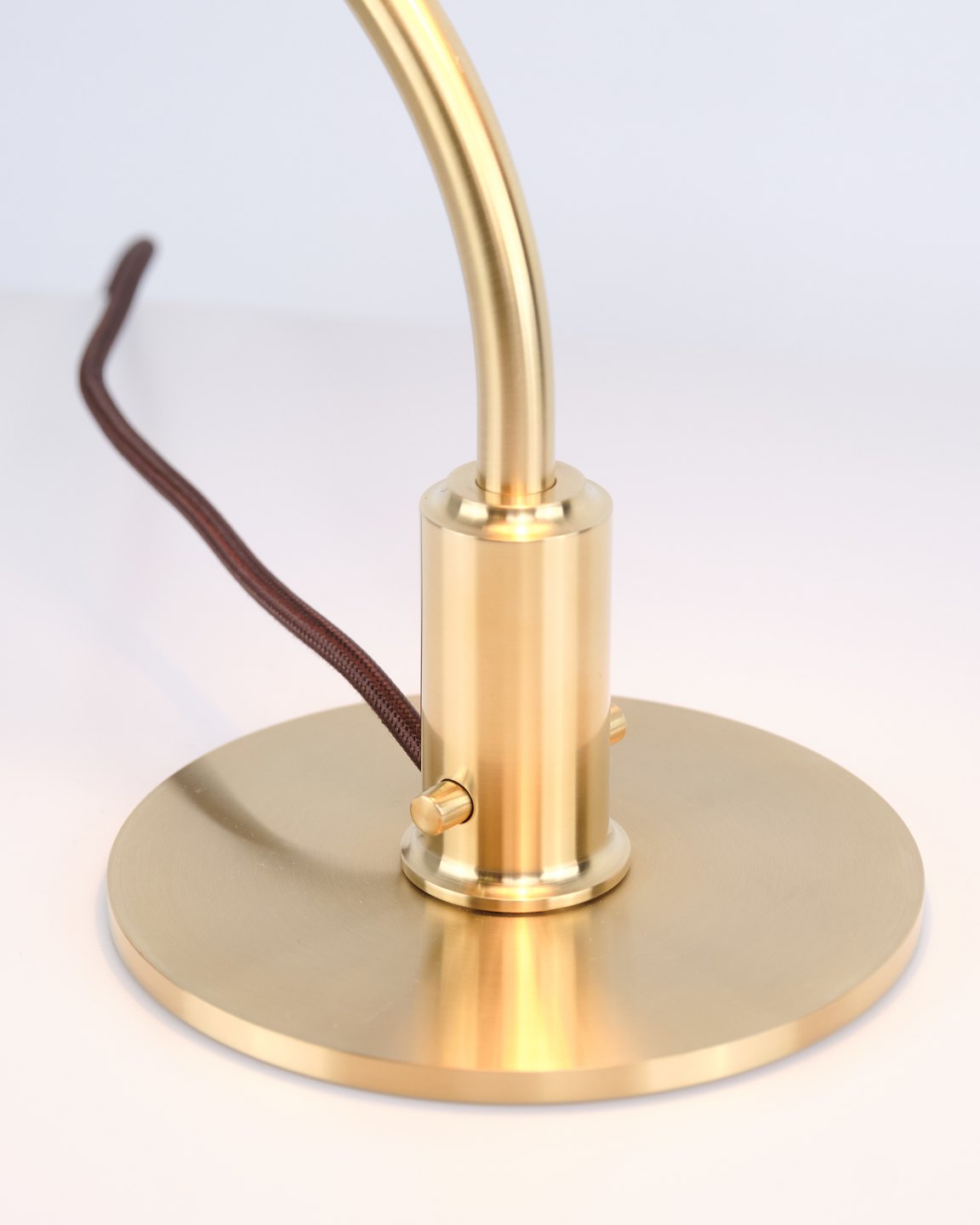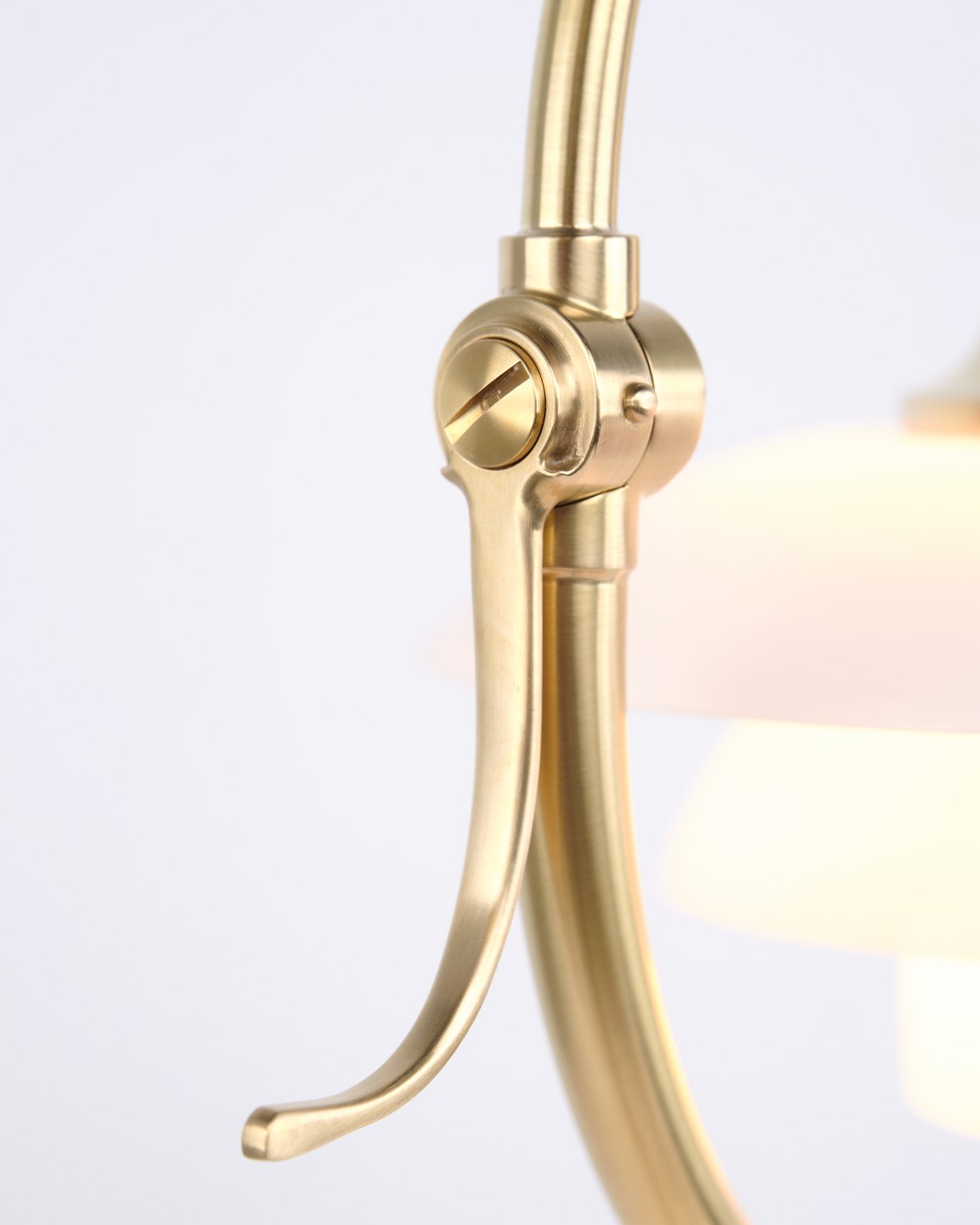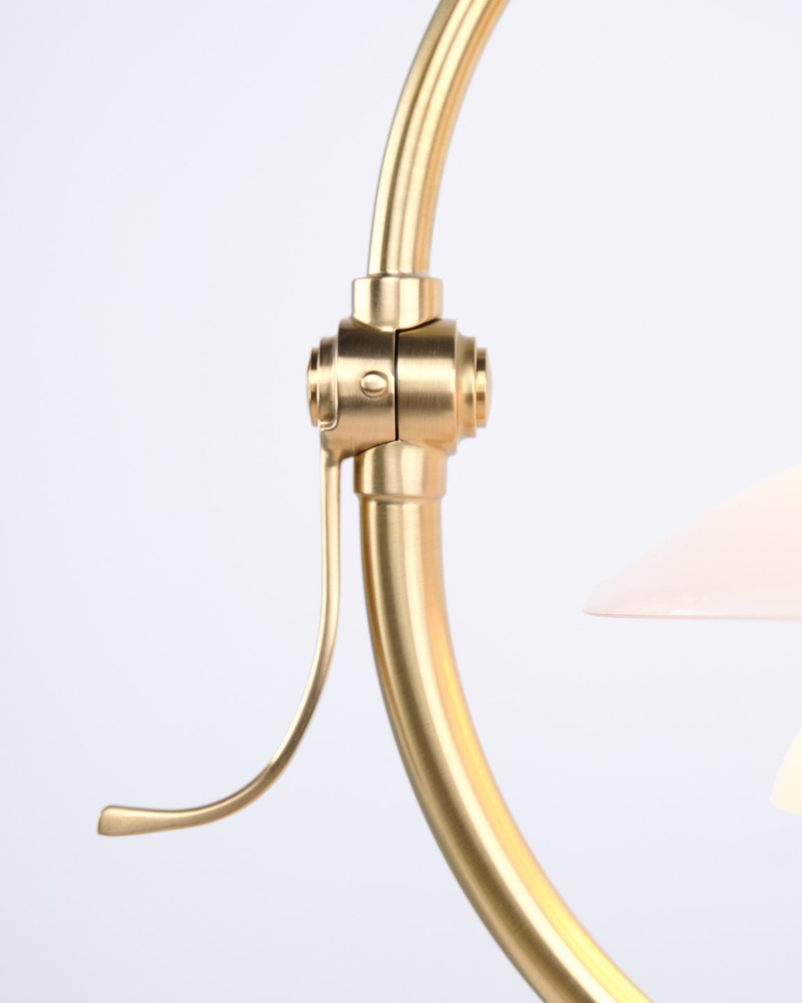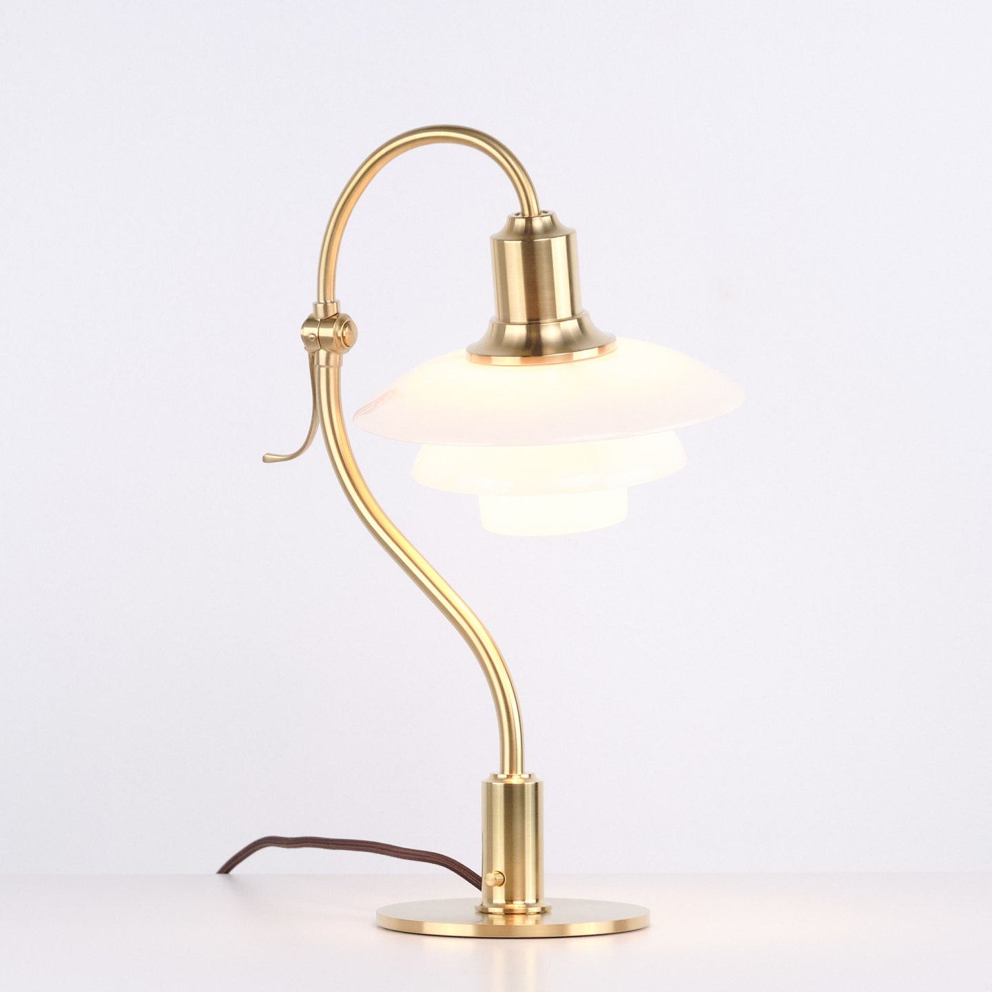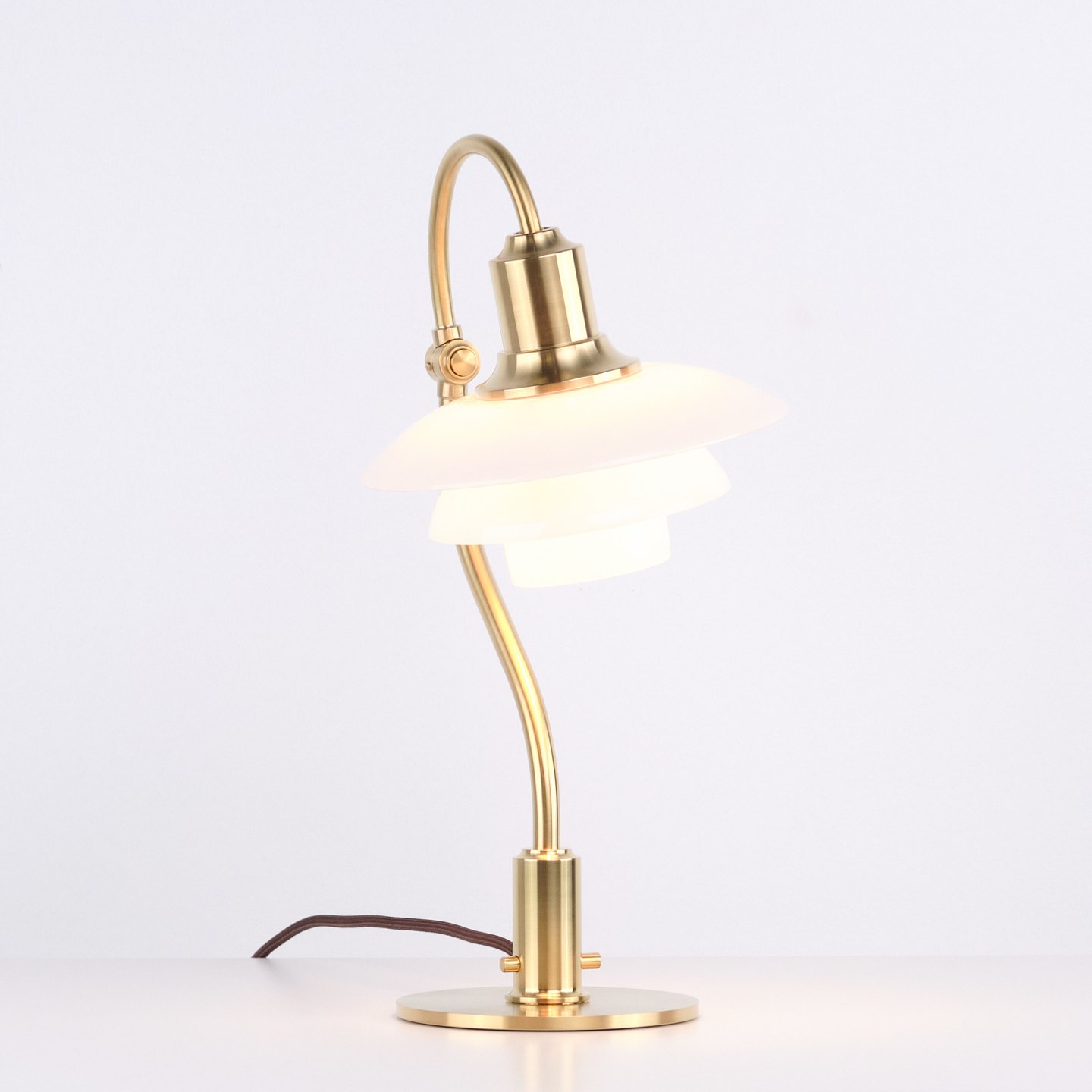 Exclusive PH 2/2 “The Question Mark” table lamp designed by Poul Henningsen and released as a Limited Edition in 2021 by Louis Poulsen. The lamp is made of brushed brass with white opal glass shades and features the characteristic curved form that gives the model its name.