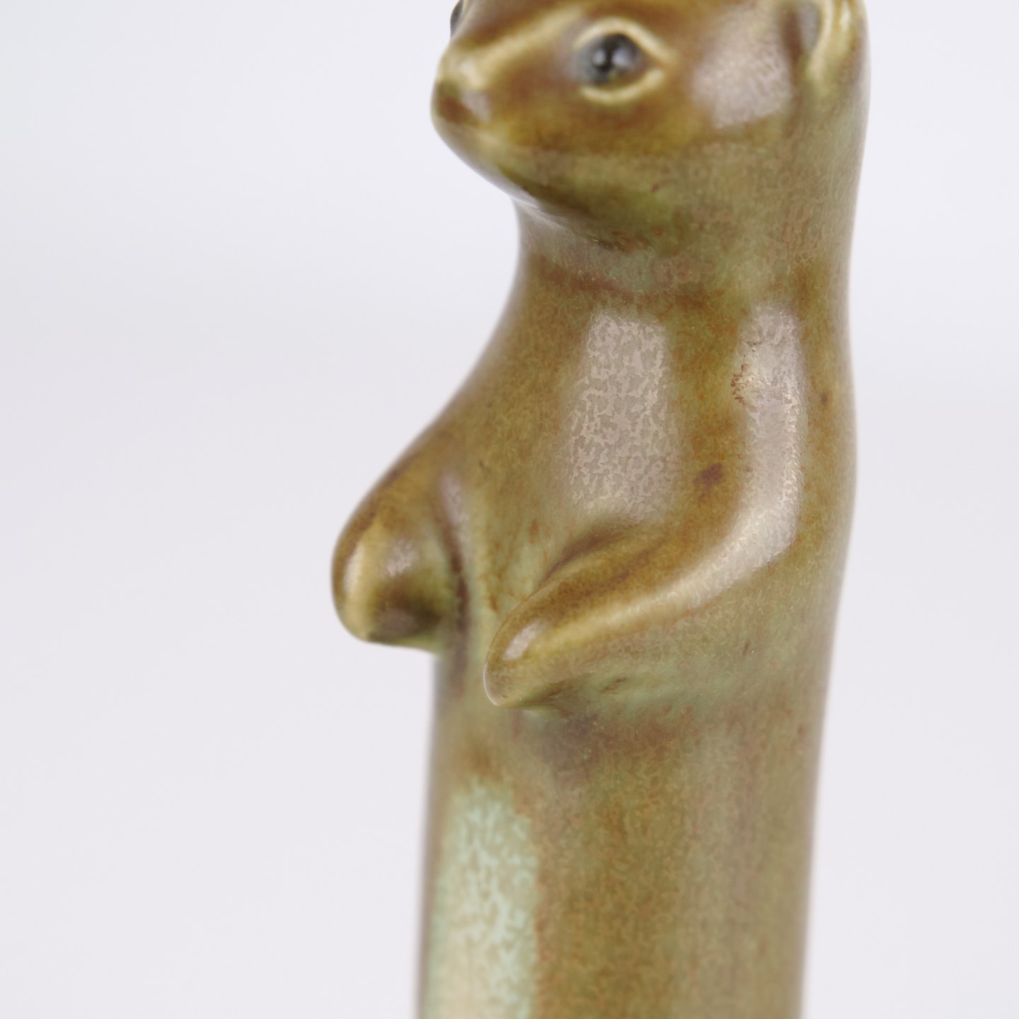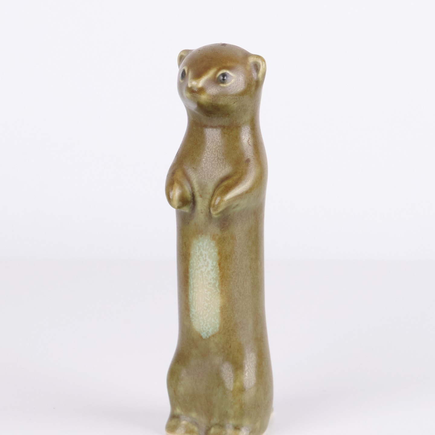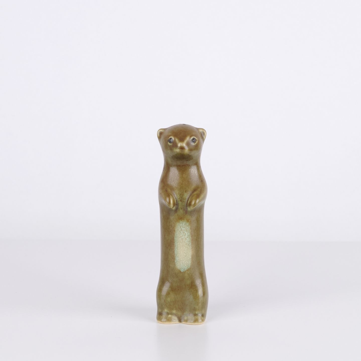 Animal figure by Knud Basse made in glazed ceramic. The figure depicts a ferret or stoat and was produced in Denmark in the 1960s. Knud Basse is known for ceramic animal figures with nature motifs and smaller production series from the period.