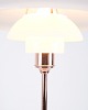 PH table lamp model PH 3½-2½ Limited Edition designed by Poul Henningsen and manufactured by Louis Poulsen. The lamp is made of copper with top shade in white opal glass and two lower shades in white opal glass. The model was sold for a limited period in 2015.